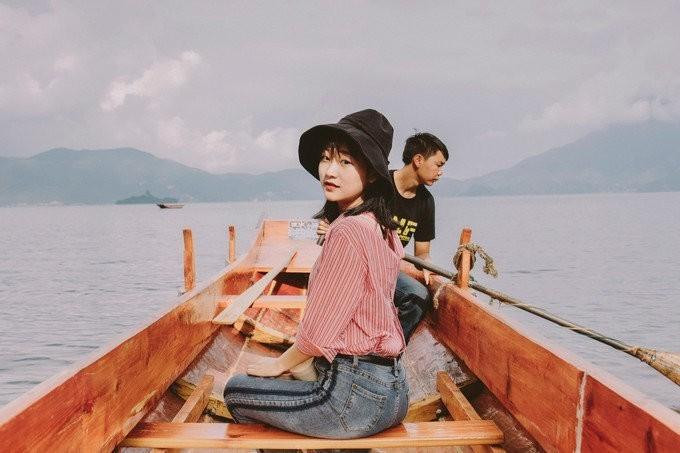坐上船出发,葱葱回眸,光打在脸上刚好。