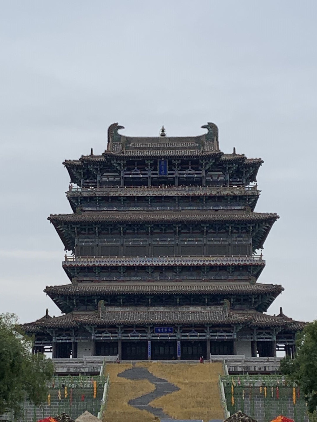 普救寺和鹳雀楼都属于后来复建的建筑,整体环境整洁有序,秩序井然,大铁牛博物馆在这方面则急需整改,园内建筑、树木感觉年久失修,管理不善,卫生间环境极差。新鹳雀楼建筑格式大气典雅,属于仿唐形制,四檐三层,总高73.9米。登高望远,不由的吟诵起那首千古名诗:白日依山尽,黄河入海流。欲穷千里目,更上一层楼!