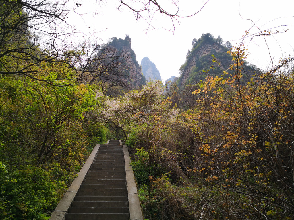 单就自然景观而言,五老峰完胜五台山,山势险峻又不乏灵秀,植被茂密,这个季节又恰逢山花烂漫,黄色的连翘,白色的白鹃梅,红色的桃花,粉色的樱花和膀胱果,虽不是浓郁的漫山遍野,但星罗棋布点缀的恰到好处。最关键的是,景区内游人稀少的让你有包场的感觉,尽可以静静的欣赏美景。
