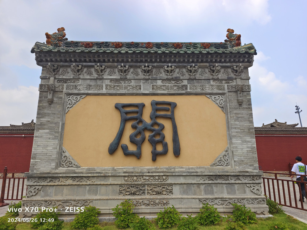 盐湖景区由于没有开放,下车点湖边只有一座刻有盐湖景区的大石头,游客虽然络绎不绝,也只能在此逗留,拍照留念而已。我们也是在候车的时间偷闲流连一番。不一会,21路车来,我们上车,12点40分到达关帝家庙景区,下车有两位上海的女游客带着行李去家庙,刚走几步,我们建议将行李存在停车场门卫处,省的还要往前走几百米,还算不错,门卫同意。我们还没有吃午餐,正好景区旁有陕西凉皮,要了两碗,权作充饥。