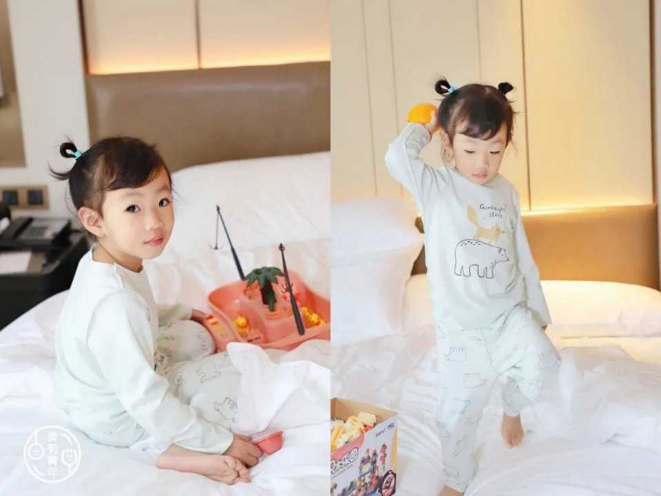 酒店客房配备高织密度的床单和羽绒被很舒服,专门为品质睡眠准备的,小朋友更是喜欢在柔软舒服的床上活动了。