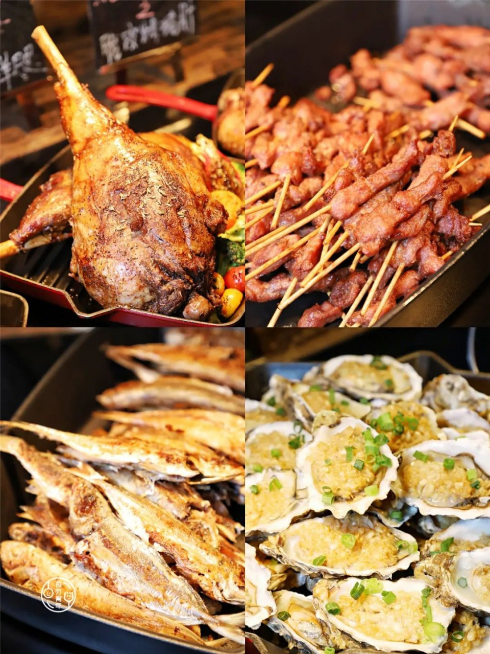 秘制烤羊腿太让人心动了,烤制的肉冒着香气,加上黑椒汁,羊腿味道更好;蒜蓉烤生蚝都是新鲜货,烧烤类鸡肉串和烤鱼都不要错过了。