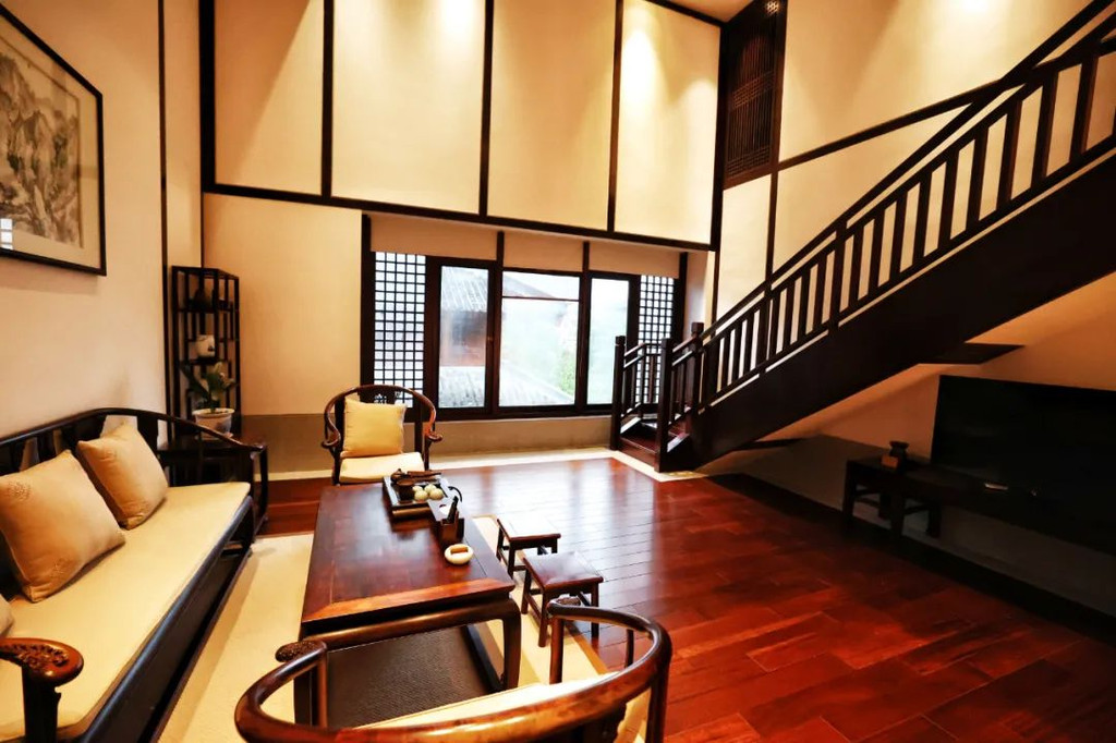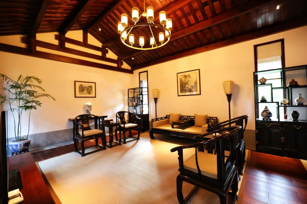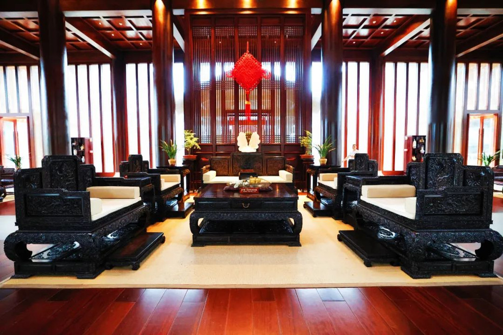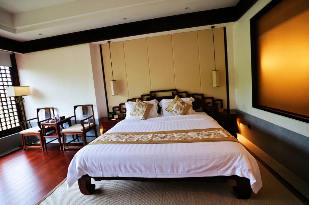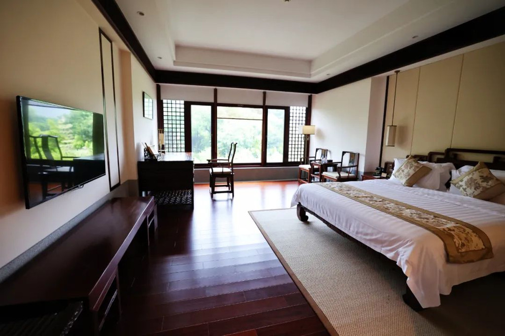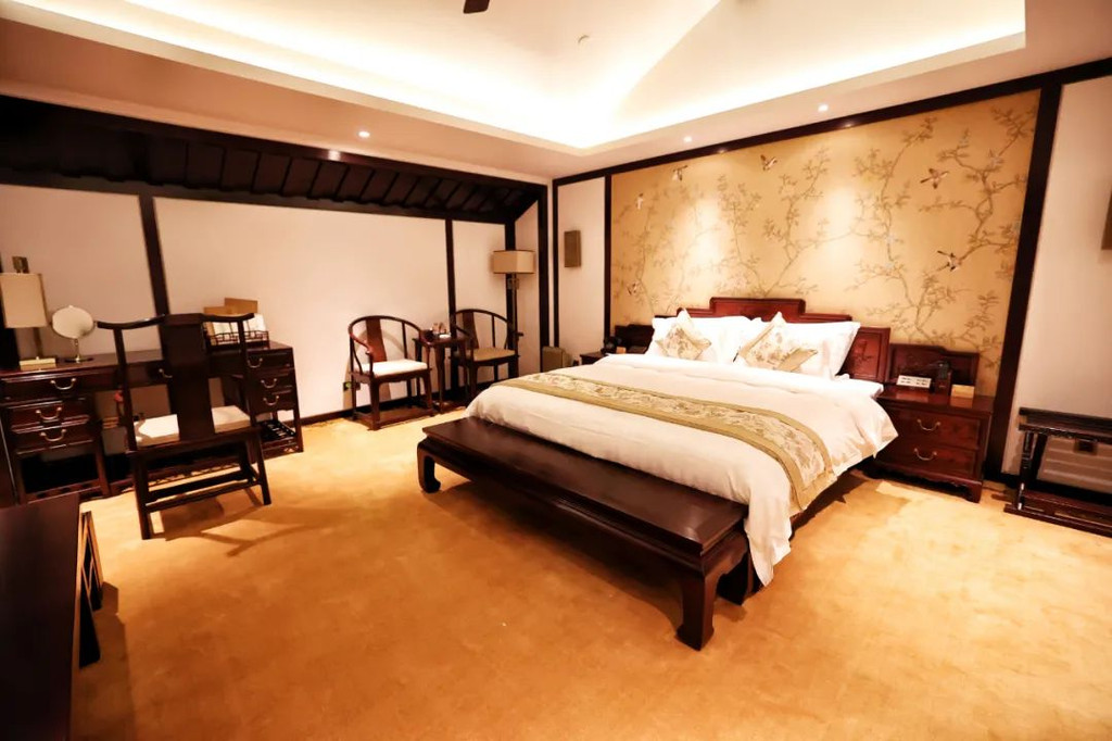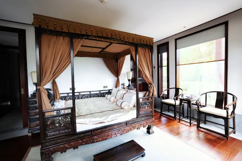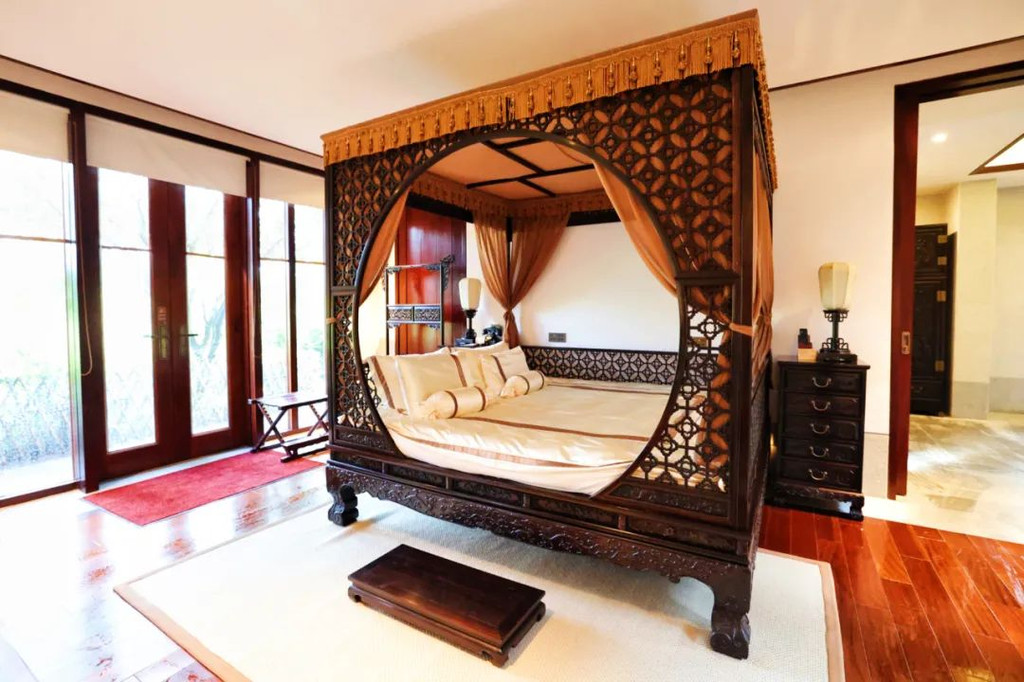 入住到充满禅意的【中式禅意客房】,房间很大,全套老挝大红酸枝红木明式家具,格调好高雅,在房间里莫名有一种平静感。