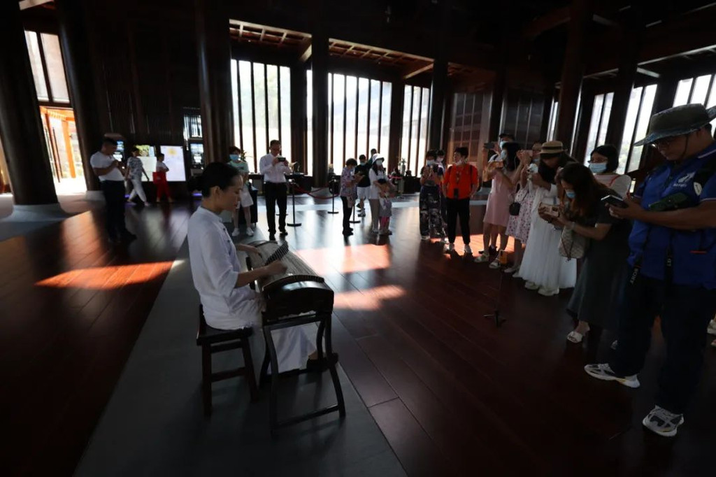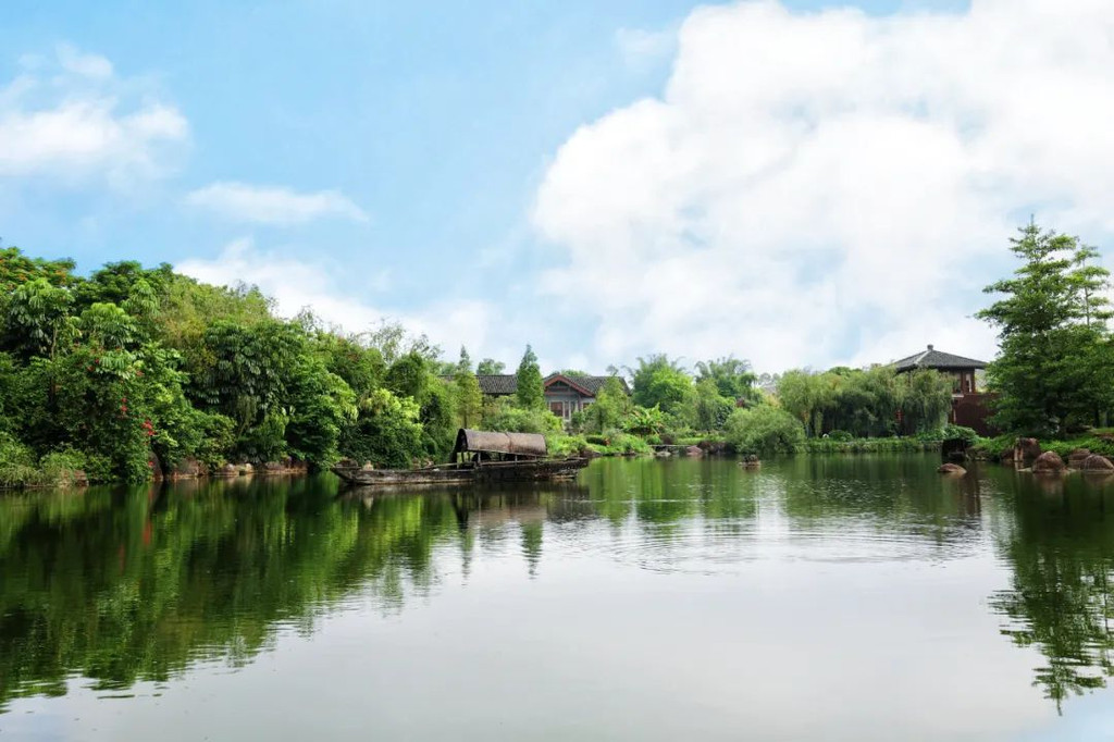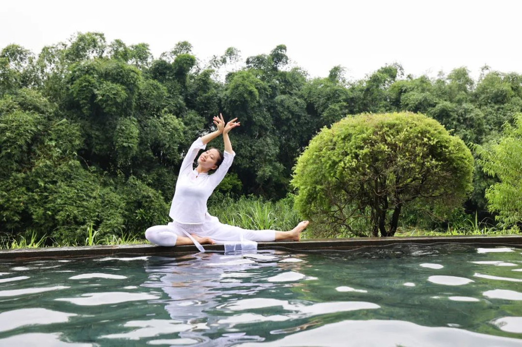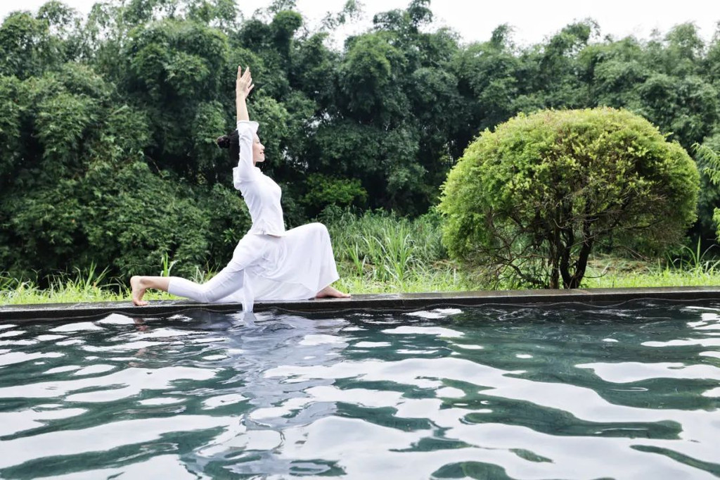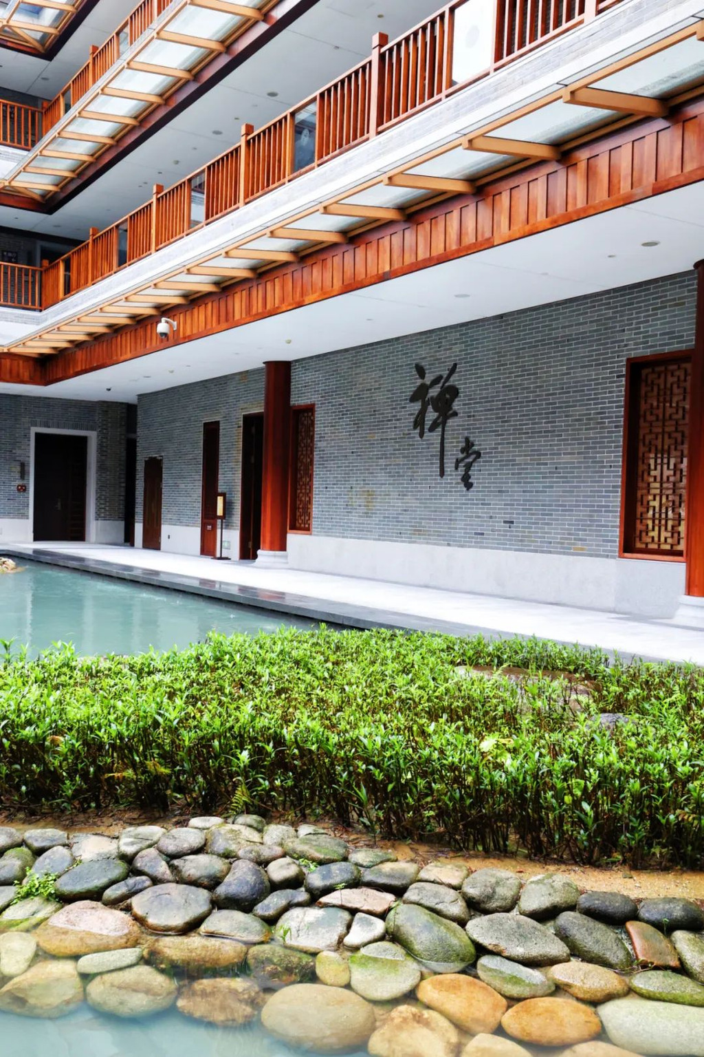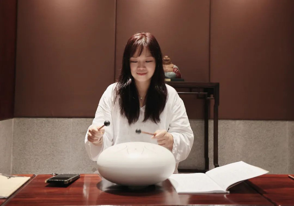 在抄写前需净手、擦拭、熏香,以示庄重。抄写过程中须禁语,所有动作需放轻放缓,抄写经书就是修行的过程,也是一种功德。抄写完成后,经书还可以收藏或供奉到六祖像前,都是功德无量、大吉大利的。我抄了一个小时了!很用心哦!【禅乐坊】再去【禅乐坊】,禅乐色空。面前这个是叫色空鼓,网上卖还挺贵的哦,敲击时会发出柔和的声音,当然我们弹会有点杂乱,不过老师弹就很好听,听起来很舒服。我用色空鼓演绎了一曲《沧海一声笑》,有谱子,按着数字敲就好!【禅坐参悟】坐禅是参悟禅道的法门,也是一种养生保健的好方法,我也是第一次在这样的环境坐一个小时的,有什么感觉呢,就是把心静下来,远离手机,远离喧嚣,真真正正感受到身心的平静。【听茶说话】来到【禅心斋】,有老师给我们介绍很多关于禅茶的知识。听茶说话,品茶,泡茶,观茶,入茶,德云水禅之妙,品一杯禅茶,听一首禅曲,细品人生苦尽甘来!在酒店的水帘大堂附近,每周二四都会有老师教大家打太极,禅武太极是好东西,珊珊也试试在平静的游泳池边舒展筋骨,直接进入人类养生的最高境界!【禅文化打卡点】除了禅文化的活动以外,酒店里还有酒店里有很多很有意思的禪文化的打卡点。【两百年的菩提树】“菩提”一词为古印度语(即梵文)Bodhi的音译,意思是觉悟、智慧,用以指人如梦初醒,豁然开朗,顿悟真理,达到超凡脱俗的境界。佛祖既然是在此树下“成道”,此树便被称为菩提树。在菩提树下打坐,也是很有意境的哦。而酒店这颗菩提树是从印度深山老林中移植,树龄有200多年了。到了晚上19:30,酒店里还有放莲心灯的活动,在树下拿着莲心灯往六祖堂放下心灯祈福许愿呢。【三不佛】就在菩提树旁边,有着三尊【三不佛】。“三不”是指“不看不听不说”,不当看的不看,不当听的不听,不当说的不说,寓意佛家所倡导的“闭目,掩耳,噤声”的思想。我感觉来这样一组照片,可以做一套朋友圈头图和表情包呢。【山水石景】在菩提树正对面,有一套山水石景,此山水石景来历不凡,所见的假山石头是广西红水河特有的摩尔石,摩尔石形状奇特而优美,色泽温润柔和,广受各路收藏家追捧,被过度挖掘,因形成难度大目前已基本绝迹。假山上种植的是日本黑松,针叶浓绿,四季常青,树姿古雅,可终年欣赏。在前台接待后方布置山水石景既是丰富景观也有传统风水讲究的“背有靠山”之意。我在酒店这几天来来回回走了几次,发现在夕阳的时候,光影会在屋檐边晒过来,真的很好看。【水晶石】就在菩提园的另一边,有一块超级大的水晶石,此水晶王产自巴西,长157cm,宽136cm,高145cm,重约3.3吨。二氧化硅(SiO2)含量高达99.99%,据说,这是穿越时空的产物,这至少需要25亿年以上的稳定地质条件方可形成,属于水晶中的极品。晶体柱面有横纹,外观宛如大钻石,在阳光照耀下,晶体晶莹剔透,晶面熠熠闪光,犹如神玉,实属旷世奇石,被誉为“水晶王”。白水晶所具有的能量磁场,还能使人头脑清明、精神爽直,令人思维敏捷、增强自信、精力充沛、延年益寿。靠在上面很舒服哦。【六祖堂】六祖堂是禅修专享项目“传灯发愿”的场所。这地方拍雨景很好看,如果用慢速拍摄的话,居然感受到有一种大雪纷纷的美感。【温泉会所】游玩菩提园可以玩一天,然后温泉会所也是可以玩一天的,就在酒店的旁边,来到了亲水平台。位于禅堂后方的亲水平台,是观景纳凉的好去处。然后通过禅道,就走到了龙山湖。【龙山湖】