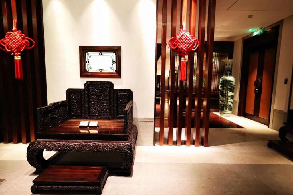 特别值得提醒大家的是大堂的宝座是印度进口的小叶紫檀木所打造,为故宫收藏版,共有17件家具组成,价值过千万,啊,我连想都不敢想!【客房】