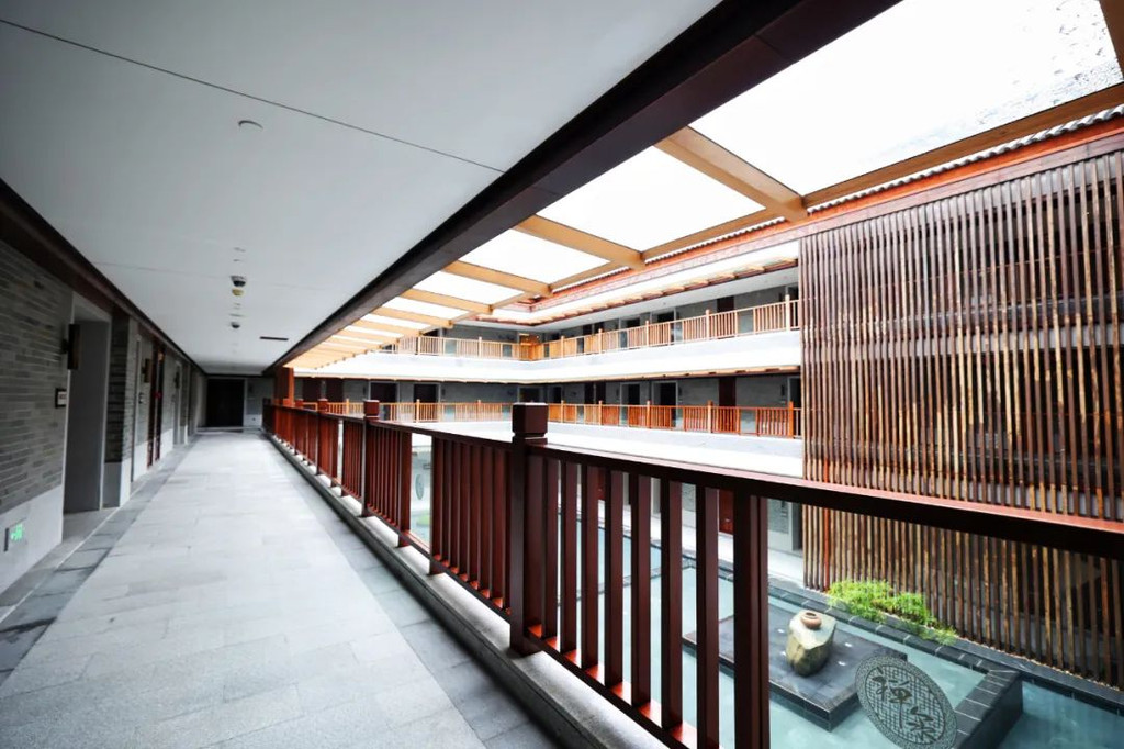 酒店很美,真的可谓是一步一景,穿过充满诗意的走廊以后,就进入到珊珊的房间了。酒店里主楼拥有283间中式客房,虽然是现代化的酒店,但他们的格布局很像以前古时候客栈的四合院的结构,大厅穿堂后即后院。各自的房间有着各自的空间,然后又在这宽敞的走廊里重逢于江湖。