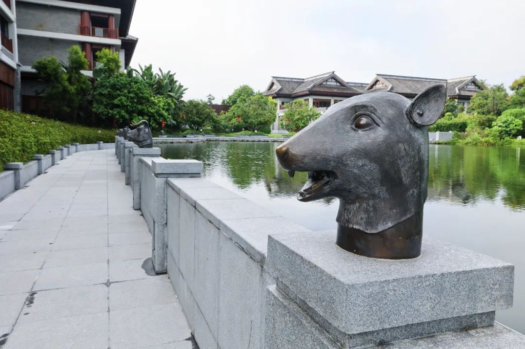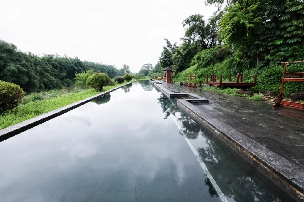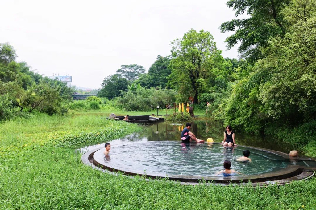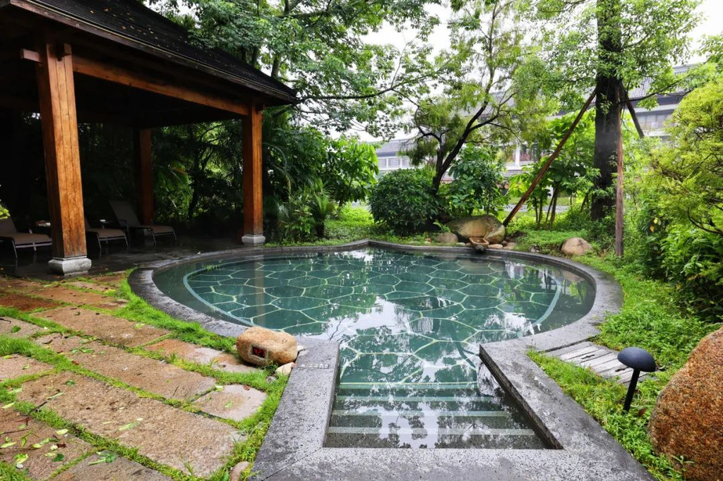 禅道紧邻龙山湖,安放有铜制十二生肖兽首且景色宜人。龙山湖为人工湖,其水位比禅道要高许多,走在禅道中犹如行走在水中,意境十足。坦白说,好几次我都在纠结,到底是景区建在了酒店里面,还是算酒店建在景区旁边,反正一路上的景点都很美,重点是一路上都会遇到服务员。应该说,这个酒店太壕气了。【禅泉温泉】酒店好玩的东西太多太多了,差点忘记了介绍,这也是一个温泉酒店哦。温泉区拥有2项亚洲第一,一是长生池,长度达39.99米,二是太阳浴,花洒直径有3米宽,温水和阳光沐浴在身上,很舒服哦。温泉区是天然的地下硫磺温泉,蕴含丰富的微量元素,对人体能起到很好的保健养生功效。在这里泡完温泉,全身滑溜溜的哦……【湿地温泉】共有25个特色泡池,尤其是百草园中药区较多功效、湿地泉环境优美、云水禅心区特色鲜明。这一个叫落雁。另外旁边那个,叫沉鱼,是一个鱼疗池。【无边游泳池】无边际泳池位于温泉园区内,住客可免费使用。