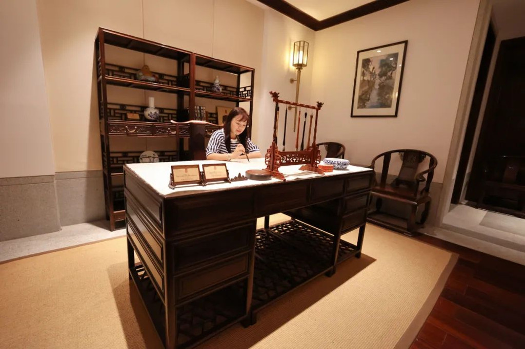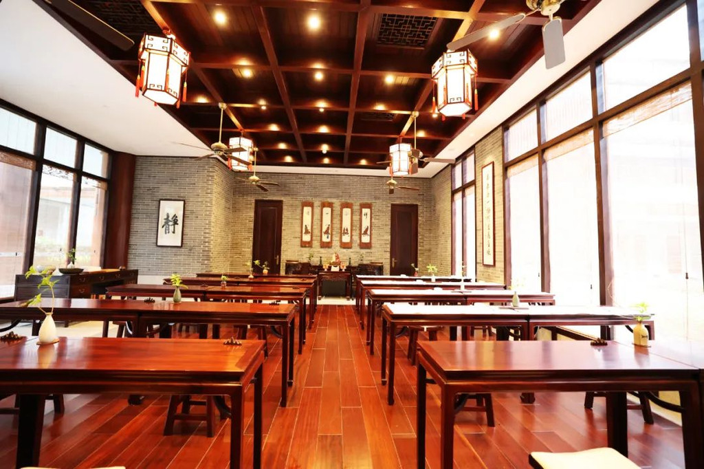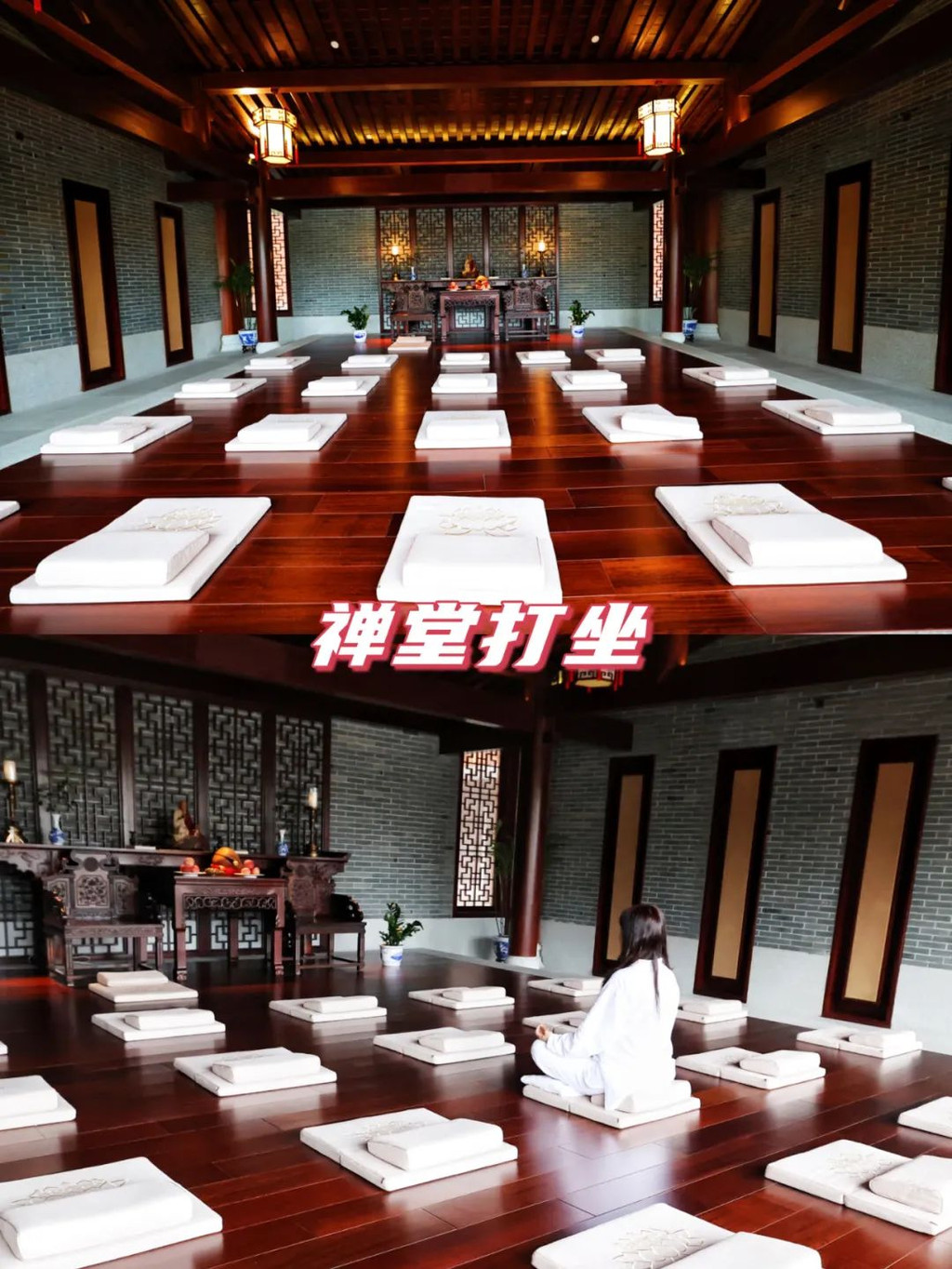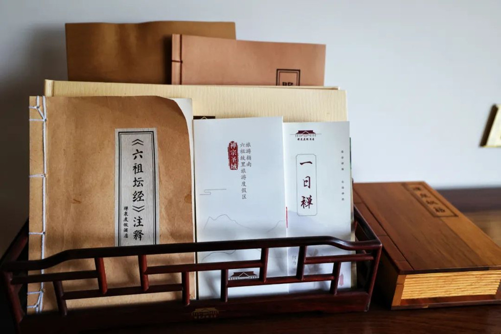 而在夹层的另一边,我看到了一个小禅房,居然在酒店房间里有禅房,这完全符合了现代人旅游的心态,去旅游景点,窝酒店里,窝房间里,舒舒服服就好满足了。【禅文化活动】当然,窝在酒店里,当然不仅仅是酒店舒服,而且单单留在酒店里,都有各种各样禅文化的活动,而且为了更有仪式感,酒店还提供给我们每人一套禅服,穿着舒适的棉麻白衣,很有感觉哦。:【抄经堂】我感觉,最能让人静下心来做的事情,就是抄经文,可以完全放空思想,无拘无束的在这里抄。珊珊今天参与了抄经文,抄经室每天定时开放,抄写的是《般若波罗蜜多心经》。