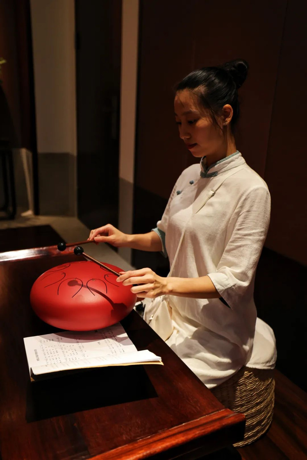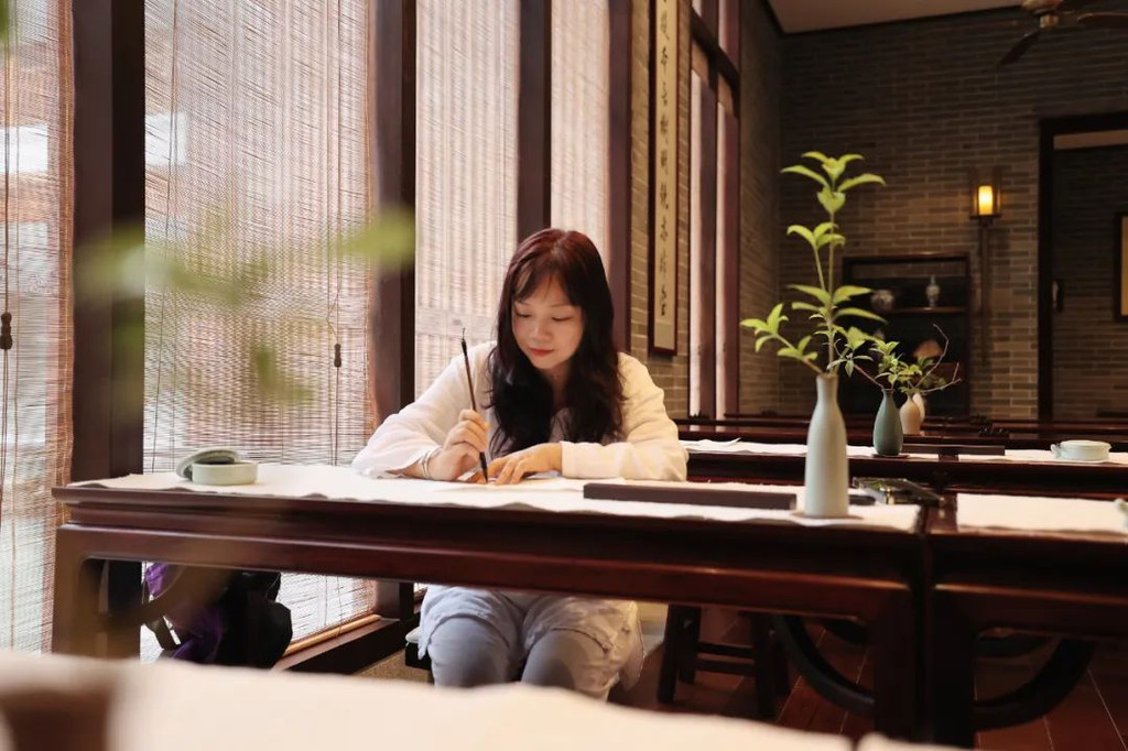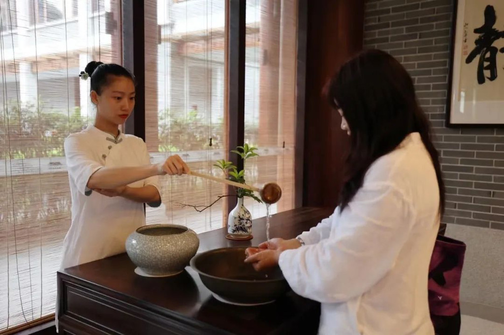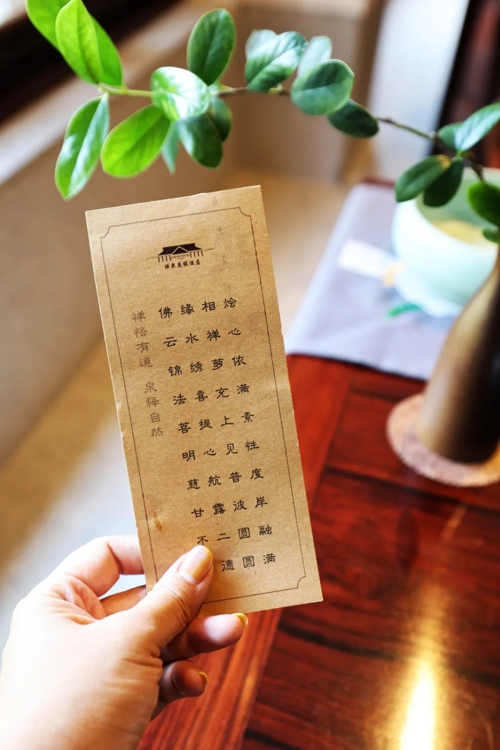而在夹层的另一边,我看到了一个小禅房,居然在酒店房间里有禅房,这完全符合了现代人旅游的心态,去旅游景点,窝酒店里,窝房间里,舒舒服服就好满足了。【禅文化活动】当然,窝在酒店里,当然不仅仅是酒店舒服,而且单单留在酒店里,都有各种各样禅文化的活动,而且为了更有仪式感,酒店还提供给我们每人一套禅服,穿着舒适的棉麻白衣,很有感觉哦。:【抄经堂】我感觉,最能让人静下心来做的事情,就是抄经文,可以完全放空思想,无拘无束的在这里抄。珊珊今天参与了抄经文,抄经室每天定时开放,抄写的是《般若波罗蜜多心经》。