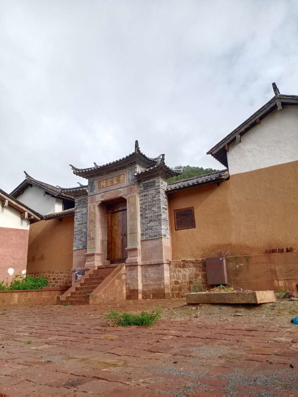 吃完火腿,沿着山路继续上山。村中间有棵大青树,五百多年历史。青树旁是提主衙门,乾隆年间进士黄绍魁改成题名坊。穿过题名坊上山,村舍越来越少。有条巷子指示牌上写着黄氏宗祠,走进去看到一间古老的宗祠,清代建筑。可惜门关着,祠前立着石牌,写着全国重点文物保护单位。诺邓黄家出了两位进士、五位举人、百余名秀才。