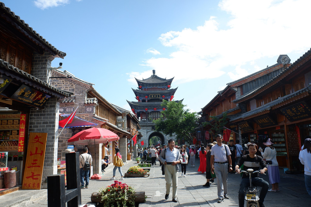 据说黄金周时期,市里无处停车,所以打车前往大理古城。