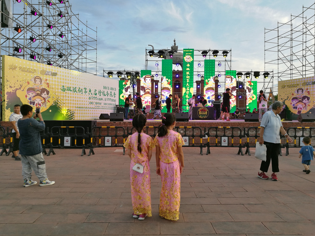 刚好赶上音乐节,在夜市的正中搭着台子,准备夜幕降临下的夜场演出。