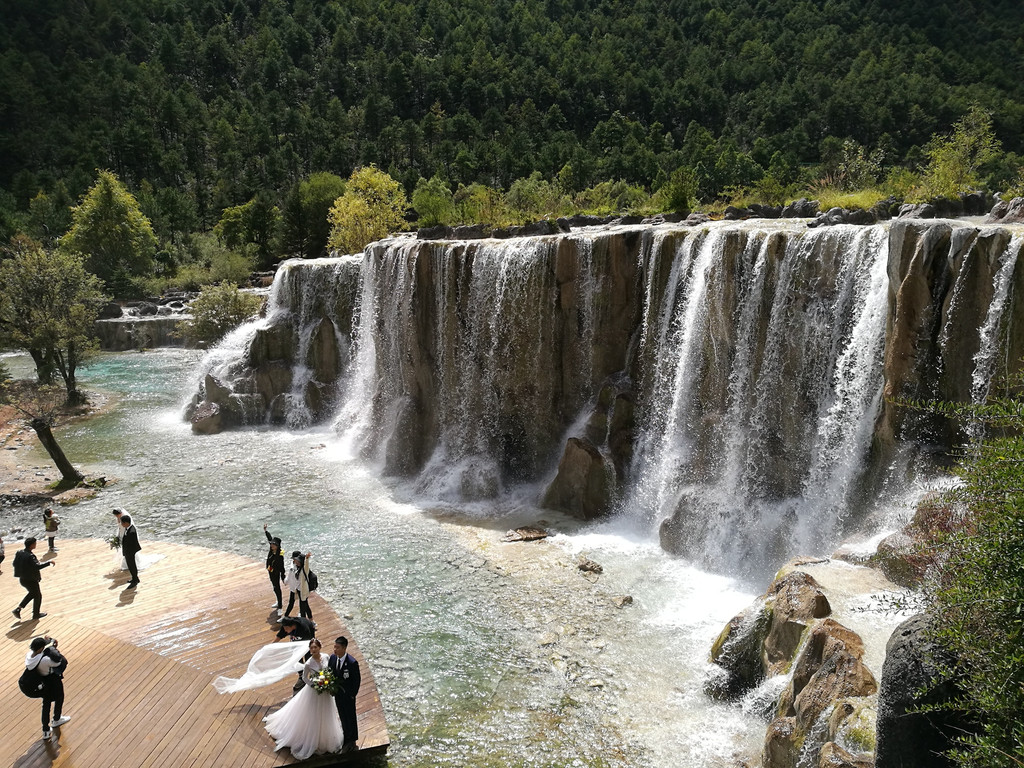 游客也相对比较多,大部分聚集在瀑布附近拍照。
