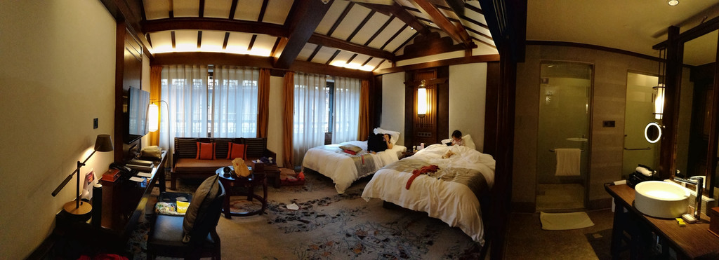 酒店本身也很赞,二层小楼的度假村格局,屋里也是古香古色的中式布局。