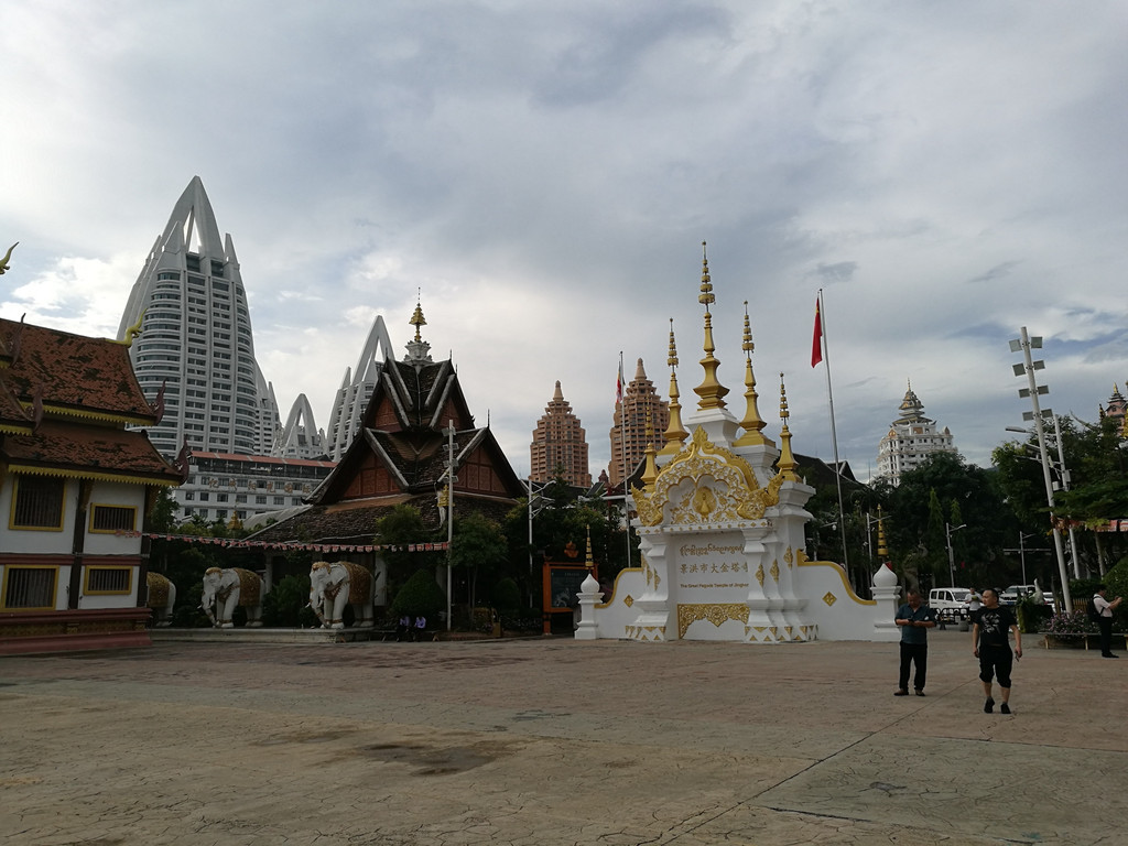 大金塔是告庄西双景标志性建筑,依山伴水。依的是郁郁葱葱的苍翠山峰,伴的是流经数国“百万大象”之称的湄公河。