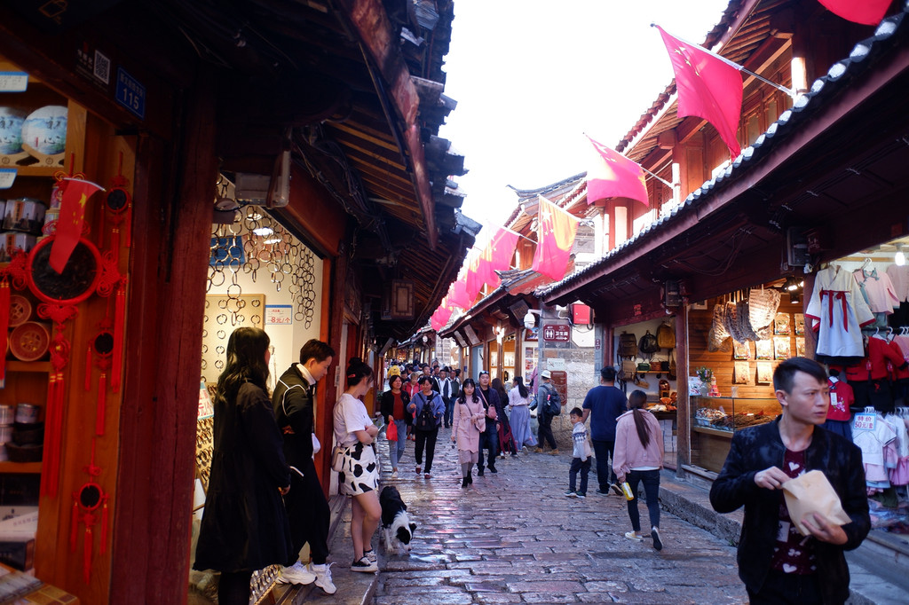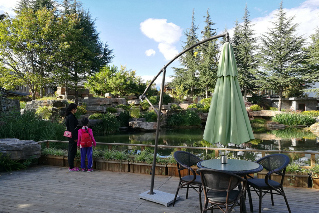 稍微休息,从酒店不出来,穿过很大的一个后花园,保安推开一道不起眼的栅栏门,就蓦然置身丽江古城之中了。