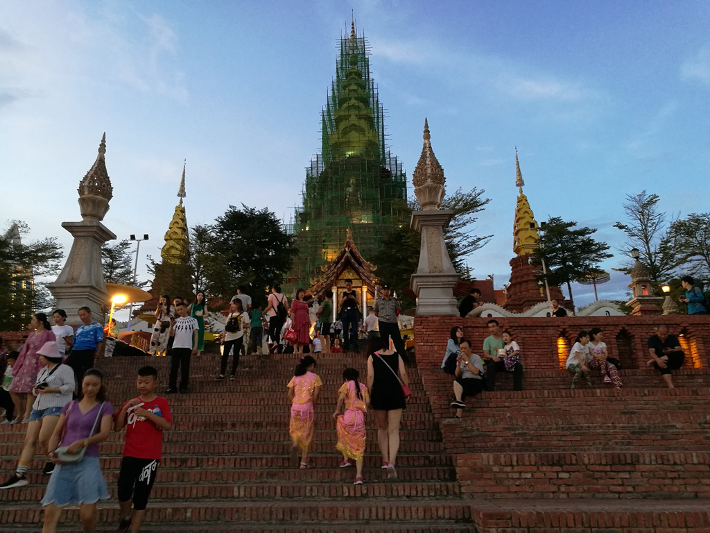 【转】西双版纳景洪大金塔寺,也称缅甸大金塔,大金塔寺是景洪市的总佛寺。主管景洪市内二百零五座寺院。是南传佛教圣地。由佛塔、佛足石(借佛祖三次出巡版纳的典故打造)、许愿台等构成,成为集观光、展览、文化研究、文化体验、旅游购物为一体的塔状贝叶经典藏博物馆。