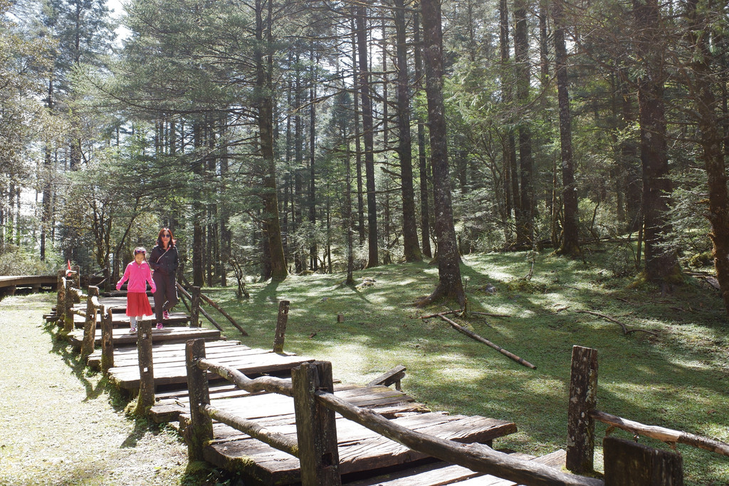 云杉坪:海拔3240米,是玉龙雪山东面的一块林间草地,约0.5平方公里,海拔3000米左右。在树林中散步,游客不多,空气新鲜,加上从林间洒下的斑驳阳光,顺着木制小路一路游戏前行,非常的惬意。