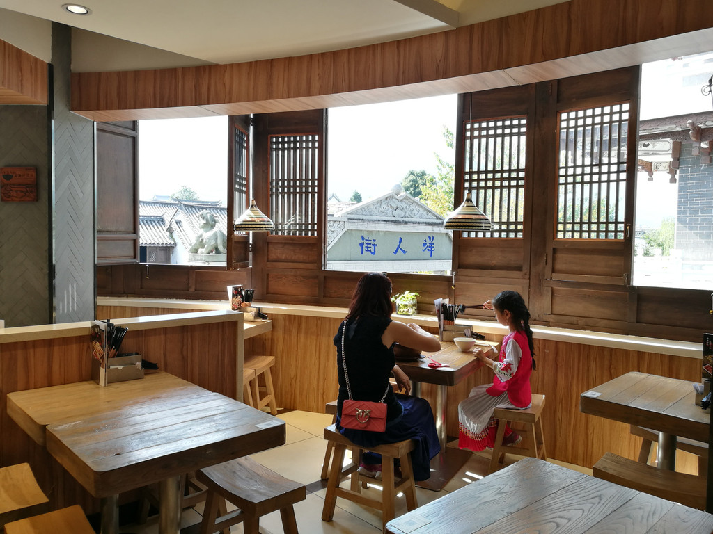 中午在古城找了一家米线店进餐,坐在二楼临窗边,下望古城街道的人来人往。
