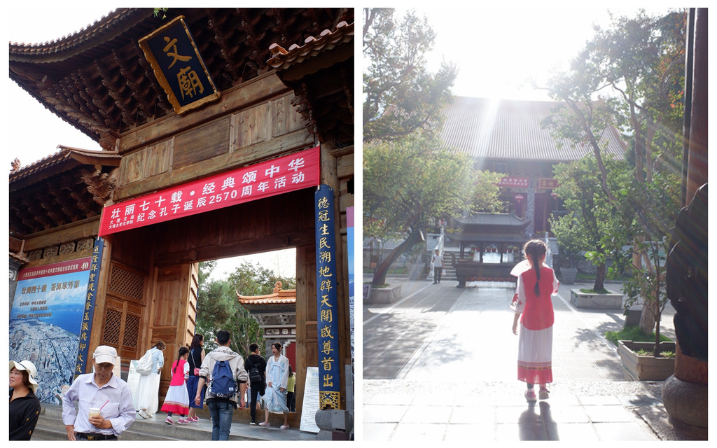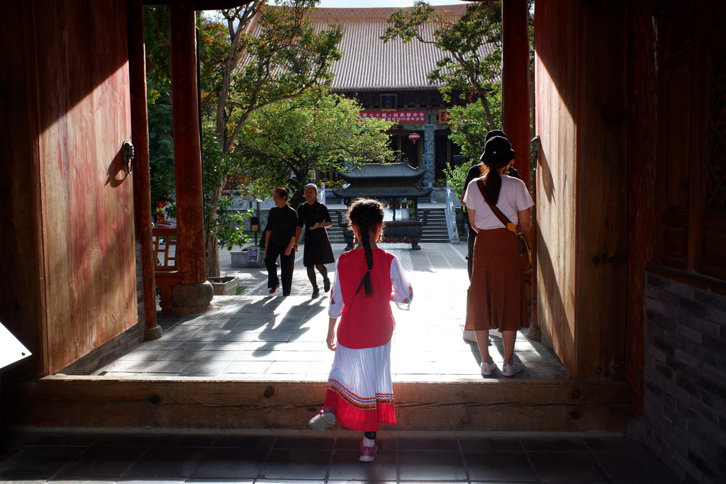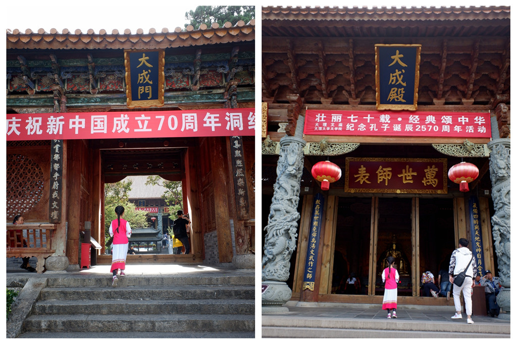 古城印象最为深刻的是文庙,就在主街道的一侧,因为临街,所以没有其他文庙门前的那段走马道。自然也就不会立着“德配天地”“道贯古今”的两个牌坊,显得有些局促和小气。但是进入文庙,格局马上变得开阔。