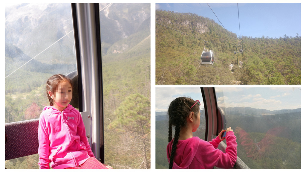 从雪山脚下乘坐缆车上山,直达云杉坪,之前被很多人提醒高山寒冷,注意着装。自己懒得多带衣服,仍旧是单裤半袖。至于孩子则是多穿了一件夹克。
