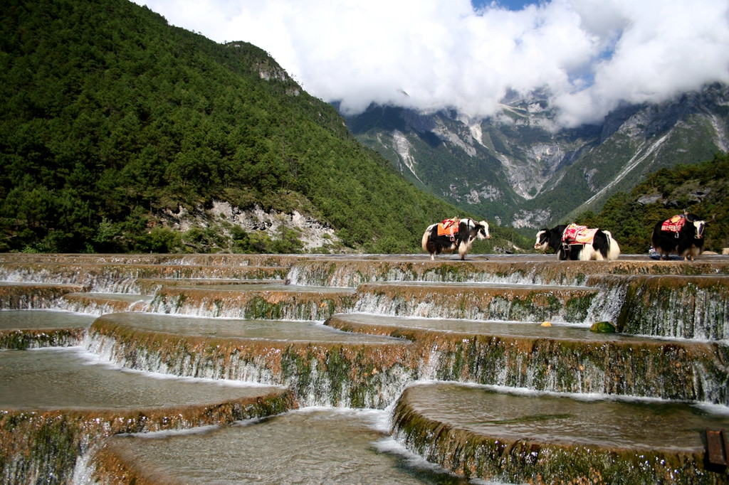 牦牛坪:纳西语称为“阁展古”(阁是高山草甸,展为有如星朵罗列,古为一方或一隅),意思是一方有如星朵罗列的高山草甸。海拔为3700米,一年四季风景如画。