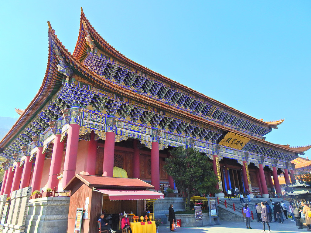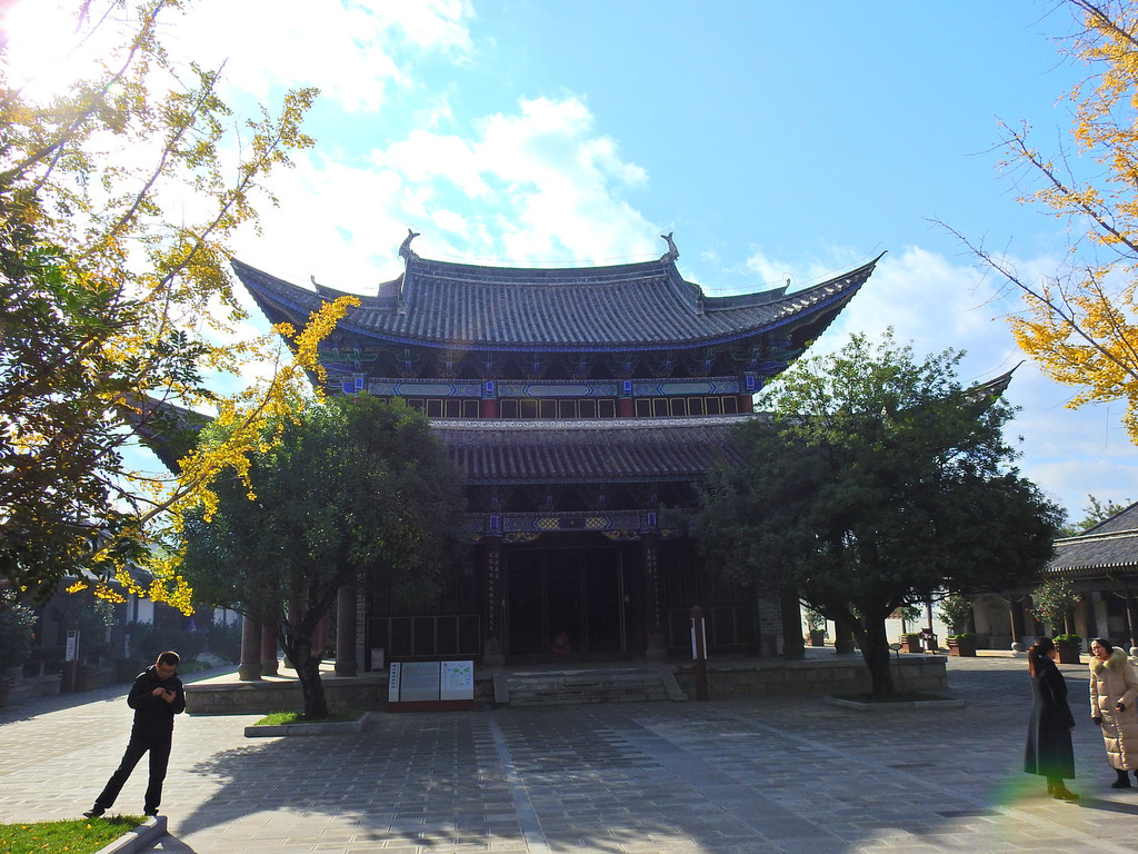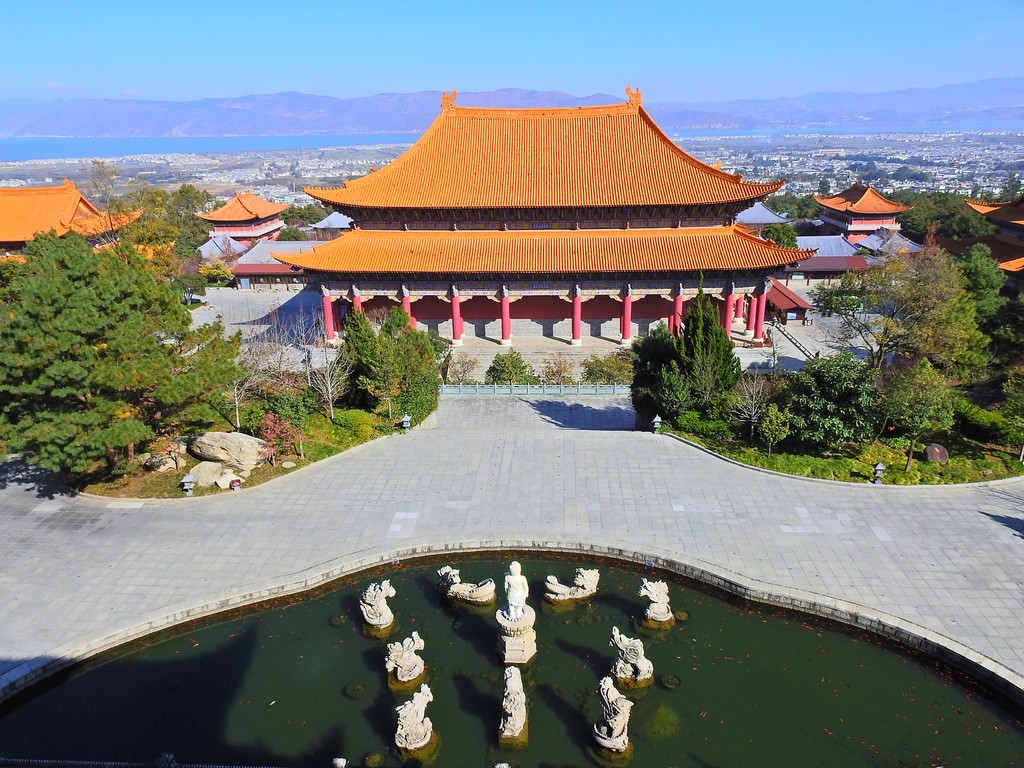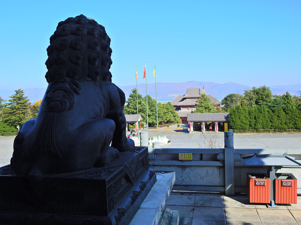 登上大殿的高处,不仅可以观看金碧辉煌的大殿琉璃瓦,还可以看到远处洱海