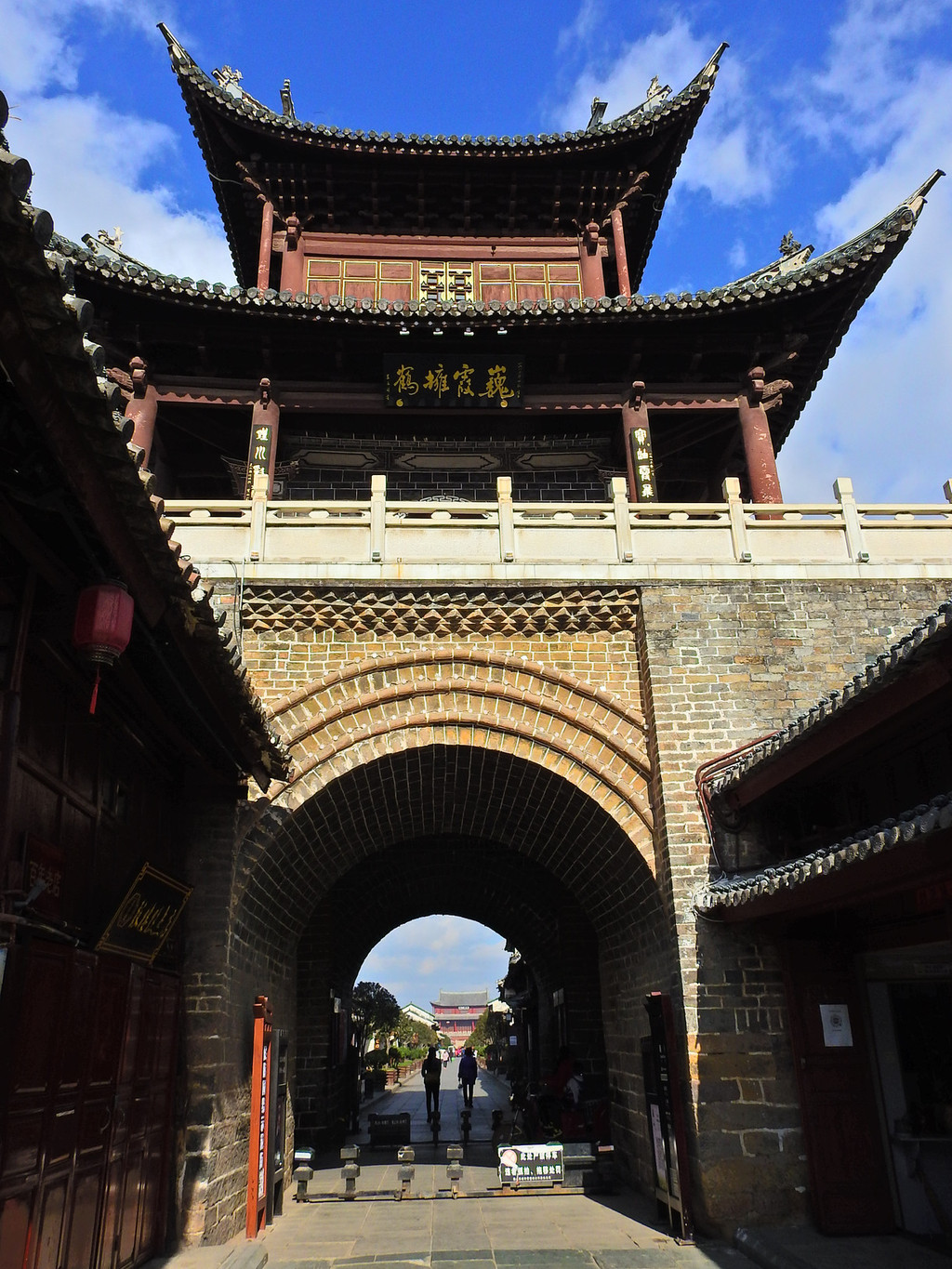 拱辰楼城楼南面挂"魁雄六诏",北面挂"万里瞻天"横匾。气势雄威。