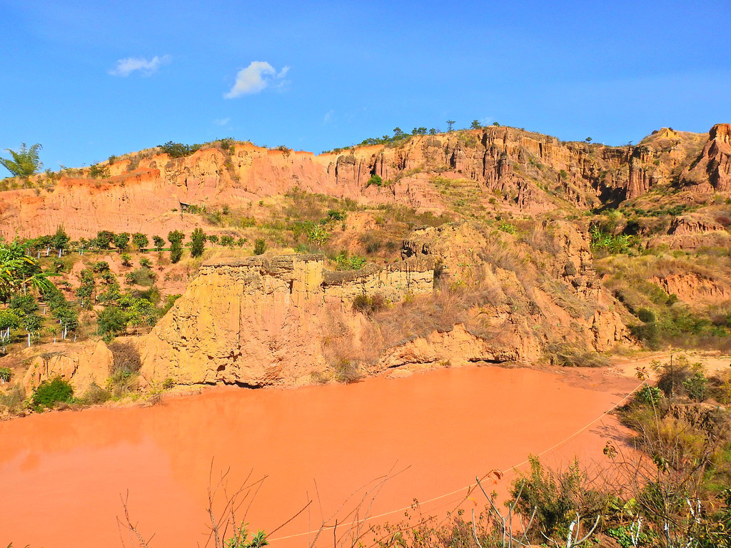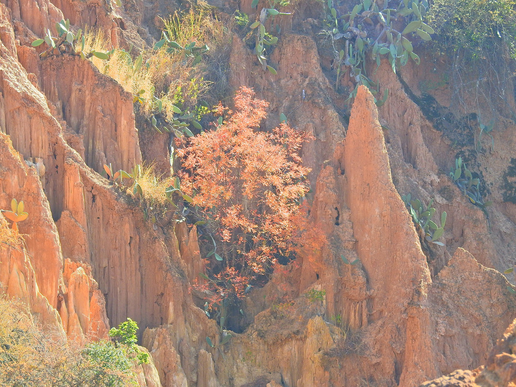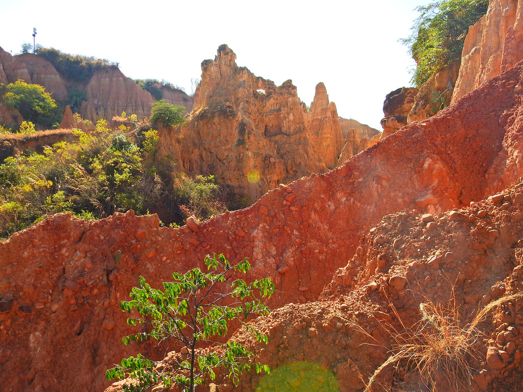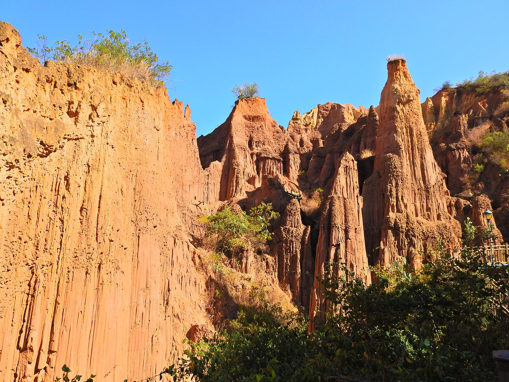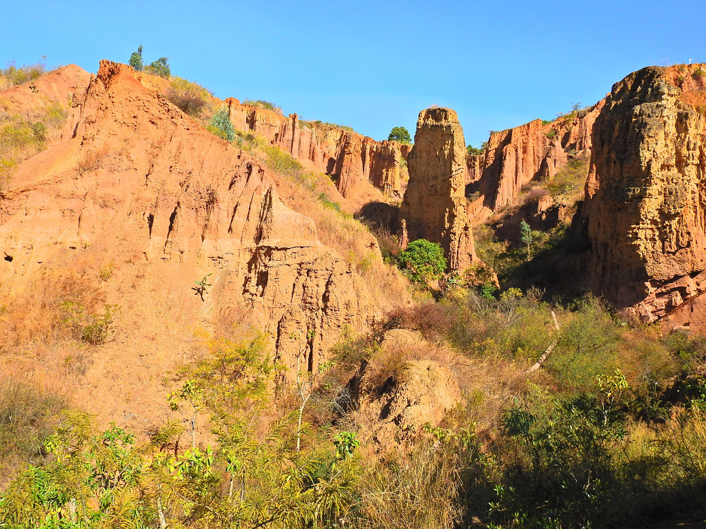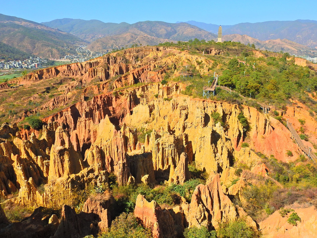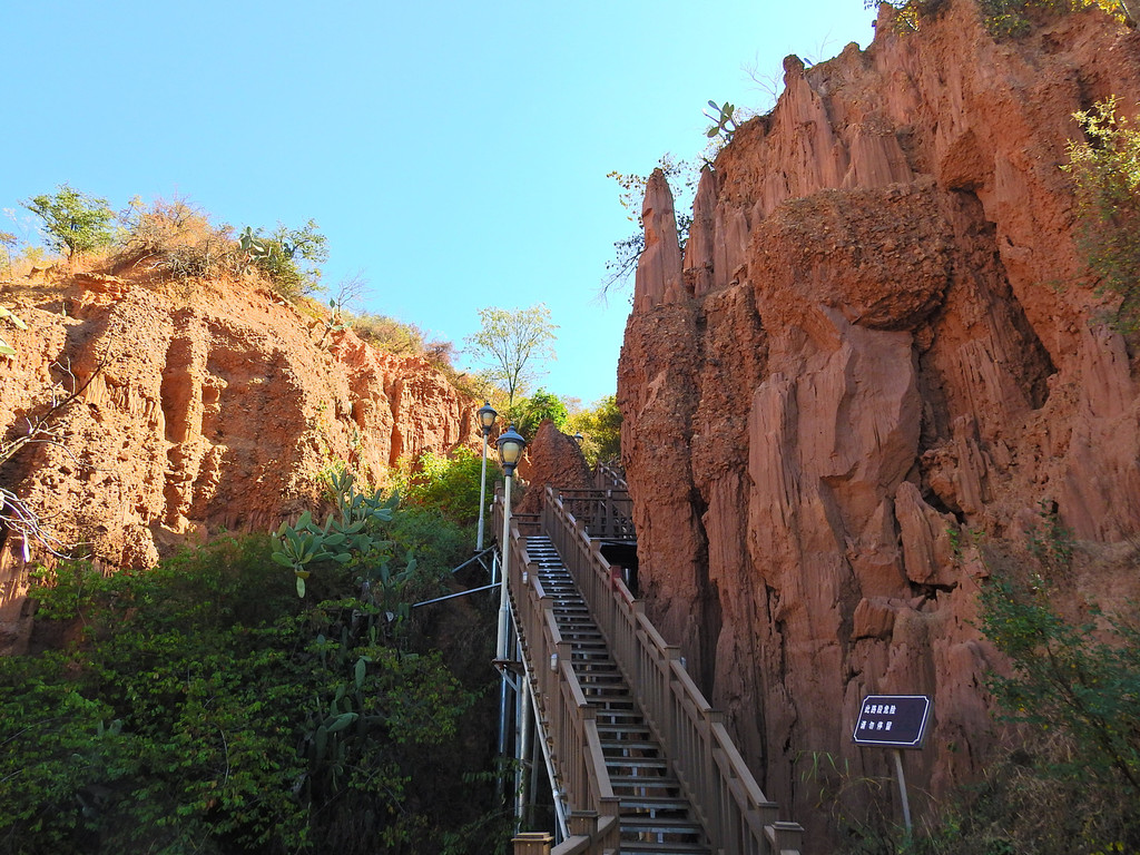冬樱花的绚丽多彩、日出时的五彩云霞久久萦绕在脑海中令人难忘。但下一站的景致就大相径庭、截然不同。这就是“南涧土林”。这里没有缤纷色彩的花朵,却有大自然风雕雨琢的杰作。虽然少了色彩,但能感受到大自然的神奇。