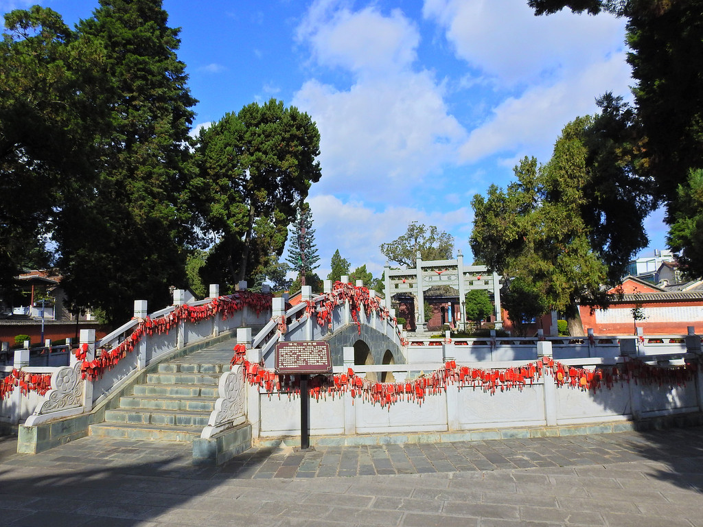 状元桥、泮池。泮池是古建筑中的一种水池,多用于学府、文庙和学宫。有振兴学业之说。而状元桥,只能是学业有成的“状元”才能从上面走,其他人只能绕行