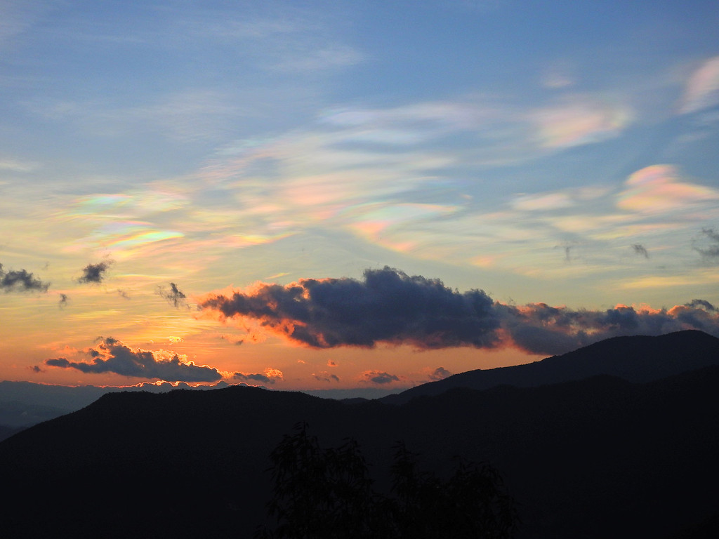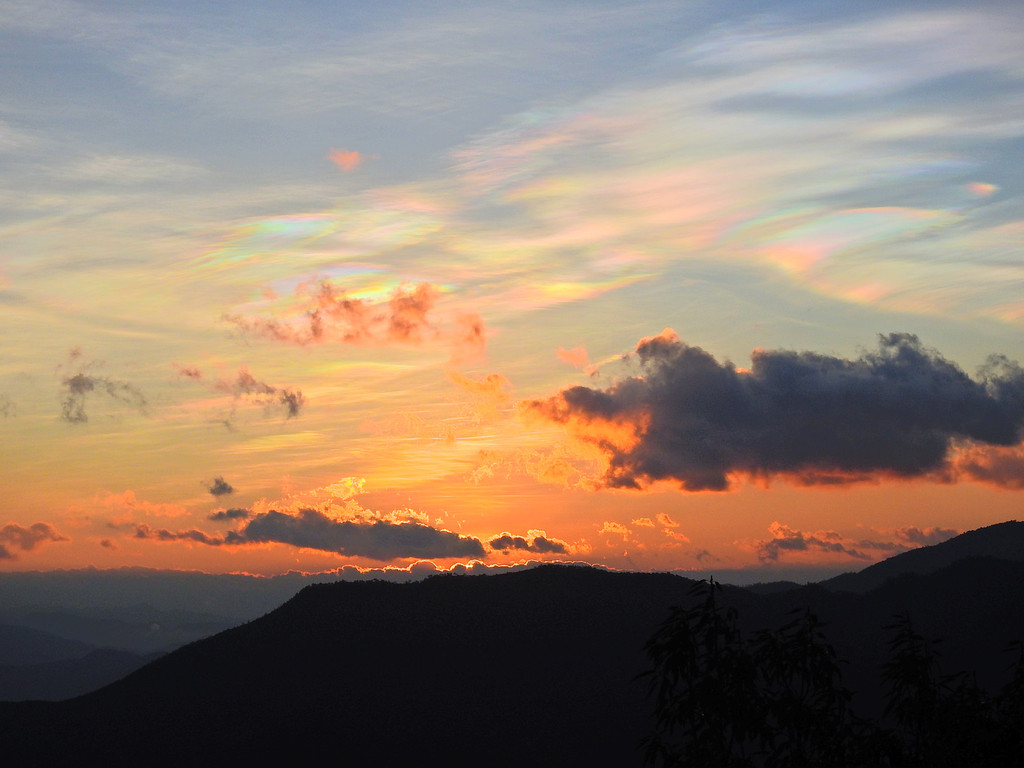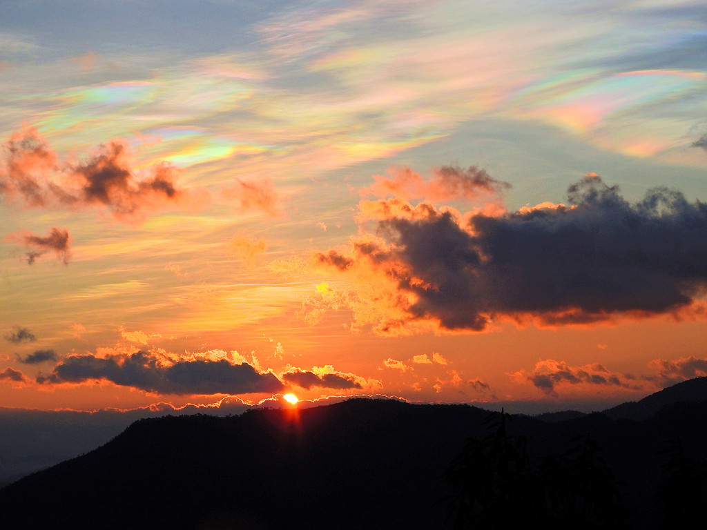 而且,五彩斑斓的云彩随着太阳冉冉升起不断地变化着。但始终是多彩绚丽、变化莫测的。感谢上天赐予!