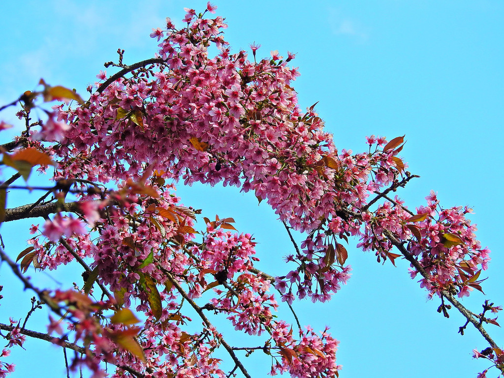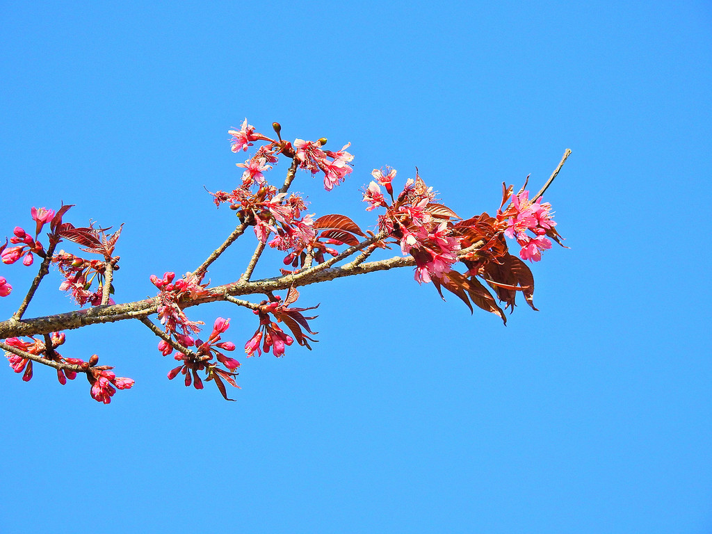 云南就是冬樱花的原产地,又名云南早樱。二级保护植物。在日本,她是最应景的花卉。
