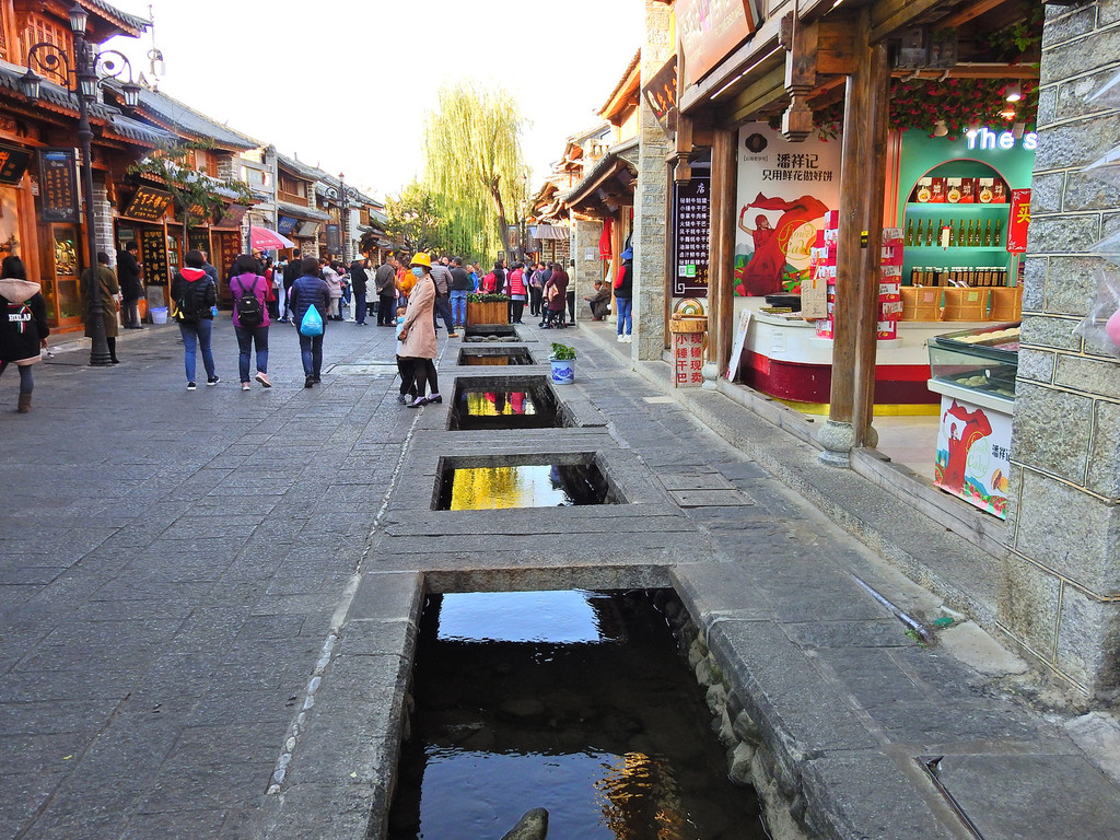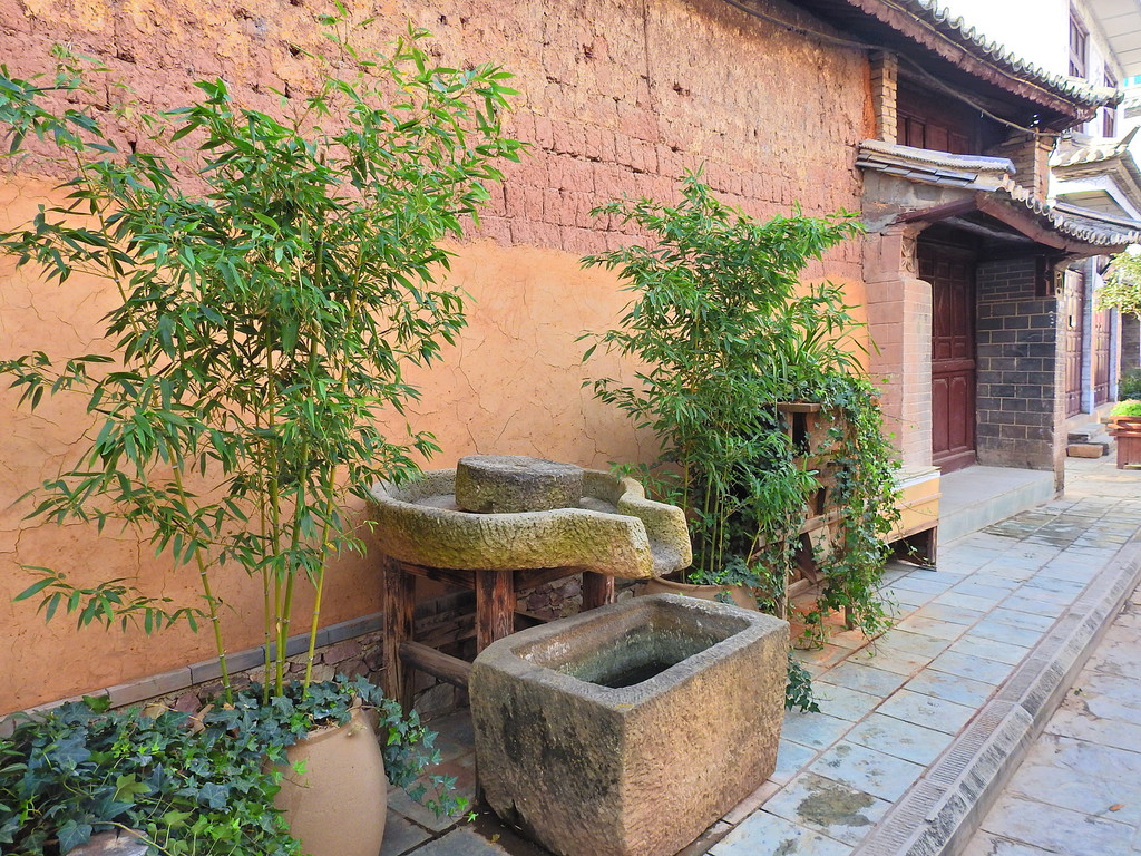城内房屋基本保持了中式结构,南、北主轴线两侧的房屋则完整的保存了明、清时代的建筑式样和风格。古城内的民居多数是院落式的,保持了大理白族的"三坊一照壁","四合五天井"土木结构的特色,