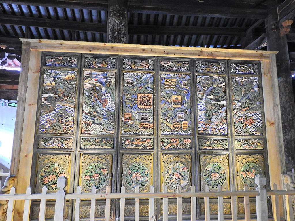 在“太阳宫”内有展示明代的木雕格栅门--这是一扇非常完整的明代木雕门。共有六扇。从上到下又分为五层,每层分别雕刻了不同的主题。有动物、有花卉、有四季景致和山水。层次鲜明、错落有致。是非常精美的杰作