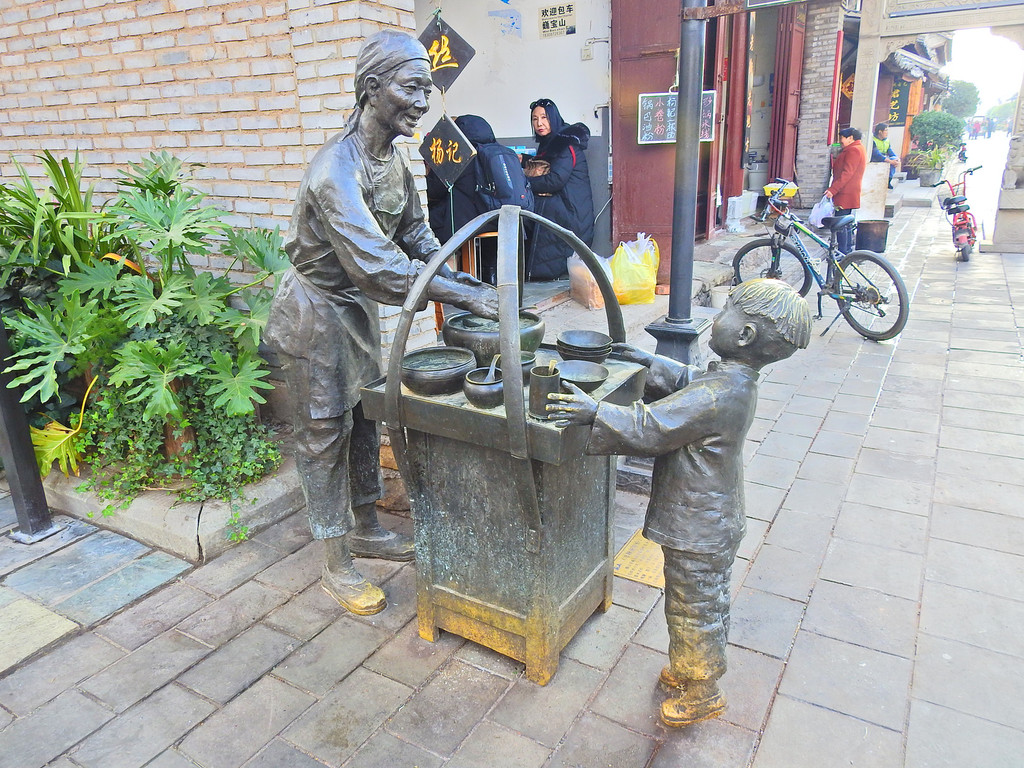 城内有多处介绍民俗风情的铜塑像