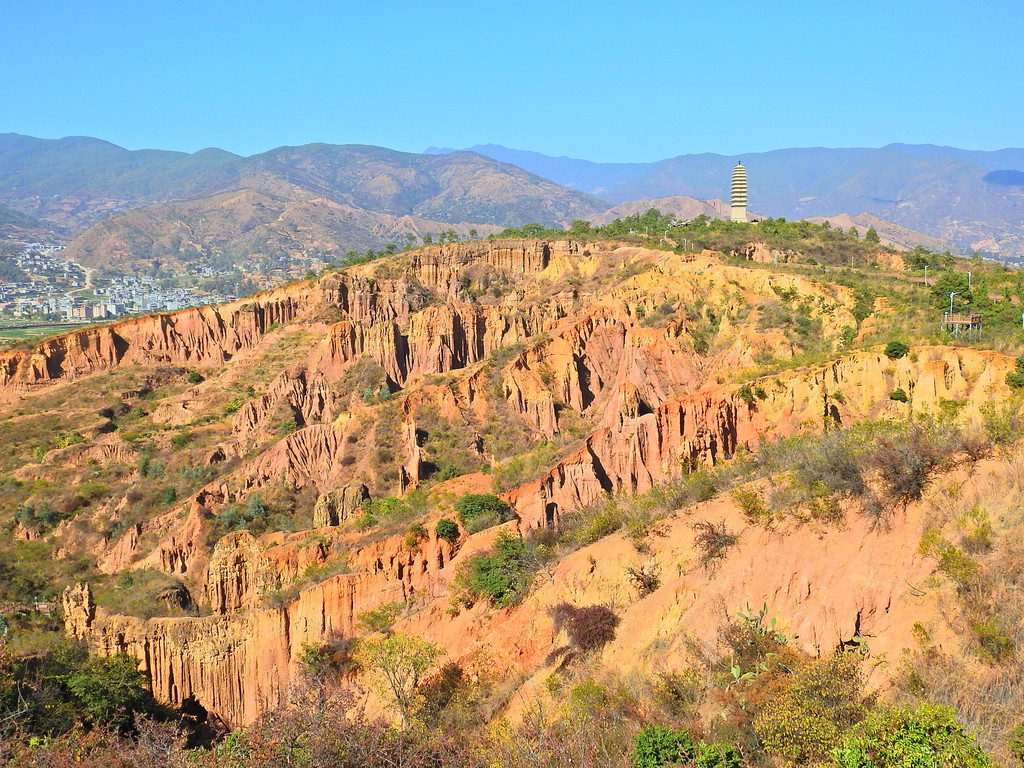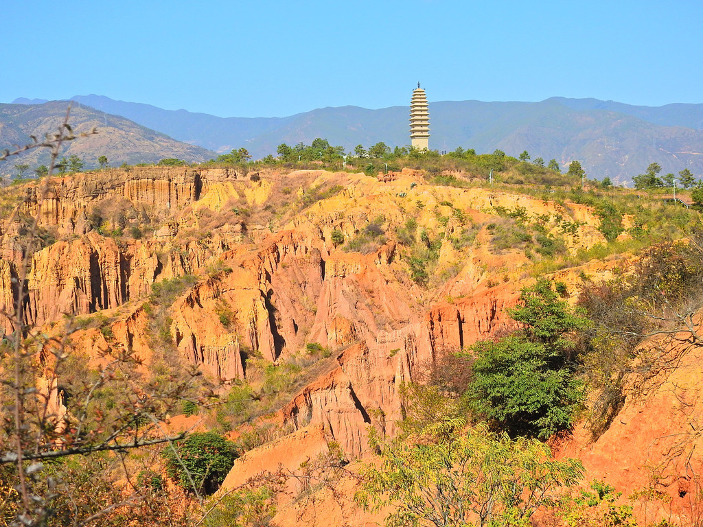“南涧土林”位于大理州南涧县南涧河谷坝子周围。在此,我想提醒一下各位。 “南涧土林”是免费景区,但它有两个入口。这两处都有免费停车场。所以,对于自驾游的朋友就有点麻烦。无论你从哪一个入口进入景区,出来就是另外一个停车场了。就需要步行沿公路走到你的停车处。否则,在景区内就按原道返回。景区内单程约为3公里。