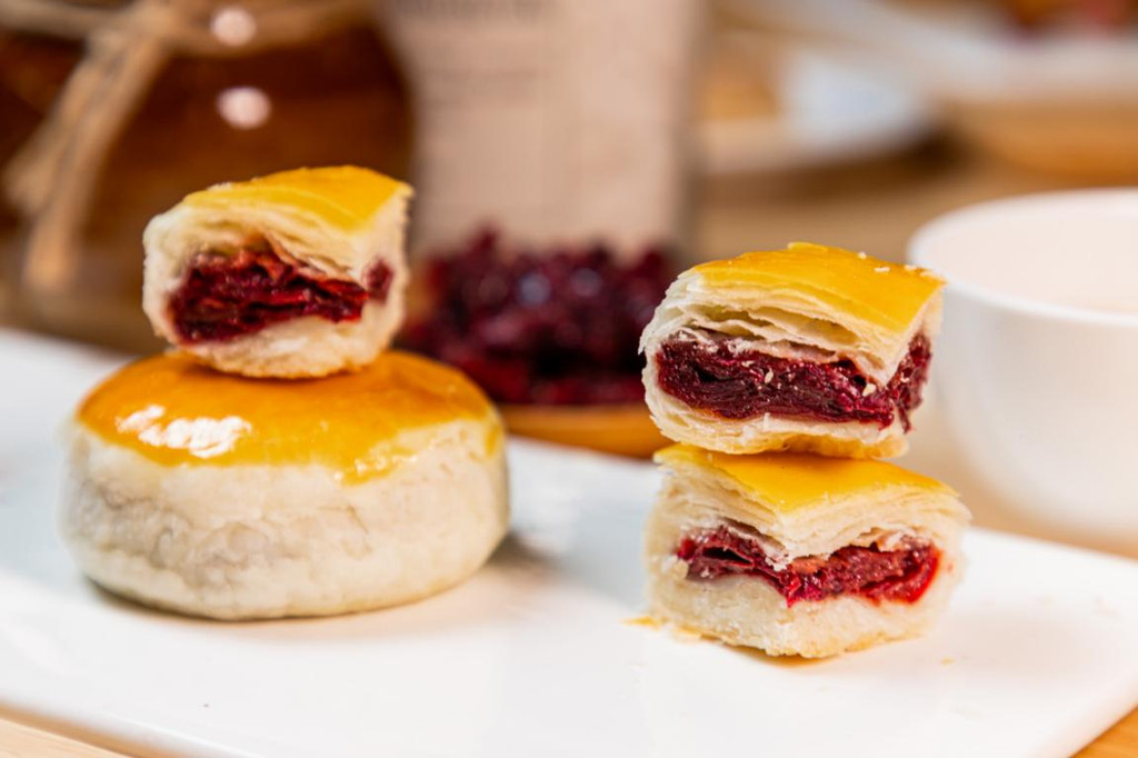 传统鲜花饼的制作中,大部分鲜花饼只以玫瑰花瓣入馅,花喵却大胆创新,以窖藏花酱入料,大大丰富了鲜花饼的口感和营养价值。同时花喵坚持人工揉面、开酥,用传统手艺保留了鲜花饼的原来的本色,带给云南人新奇却不失传统的美味。来到云南旅游,怎能不亲口品尝呢?