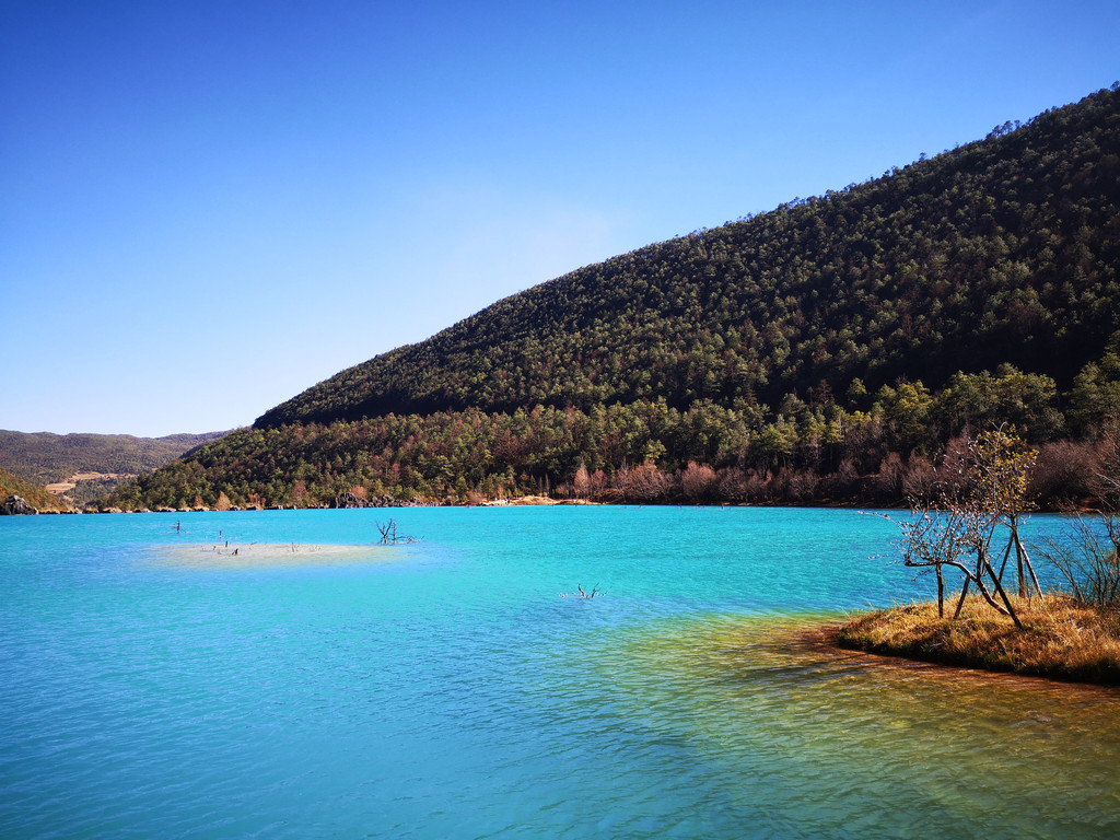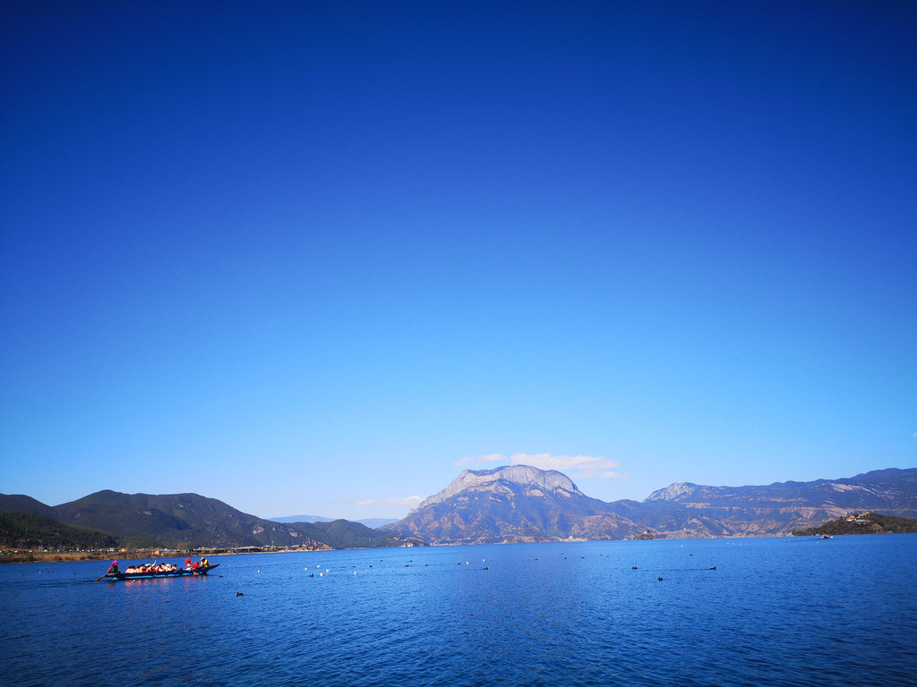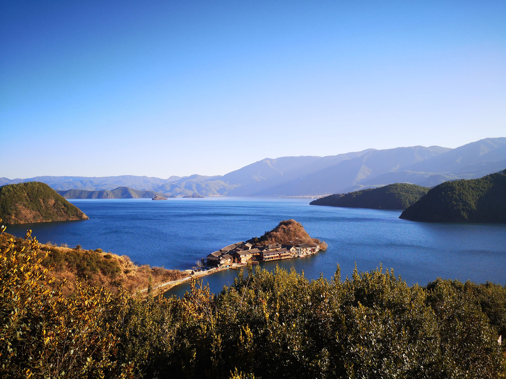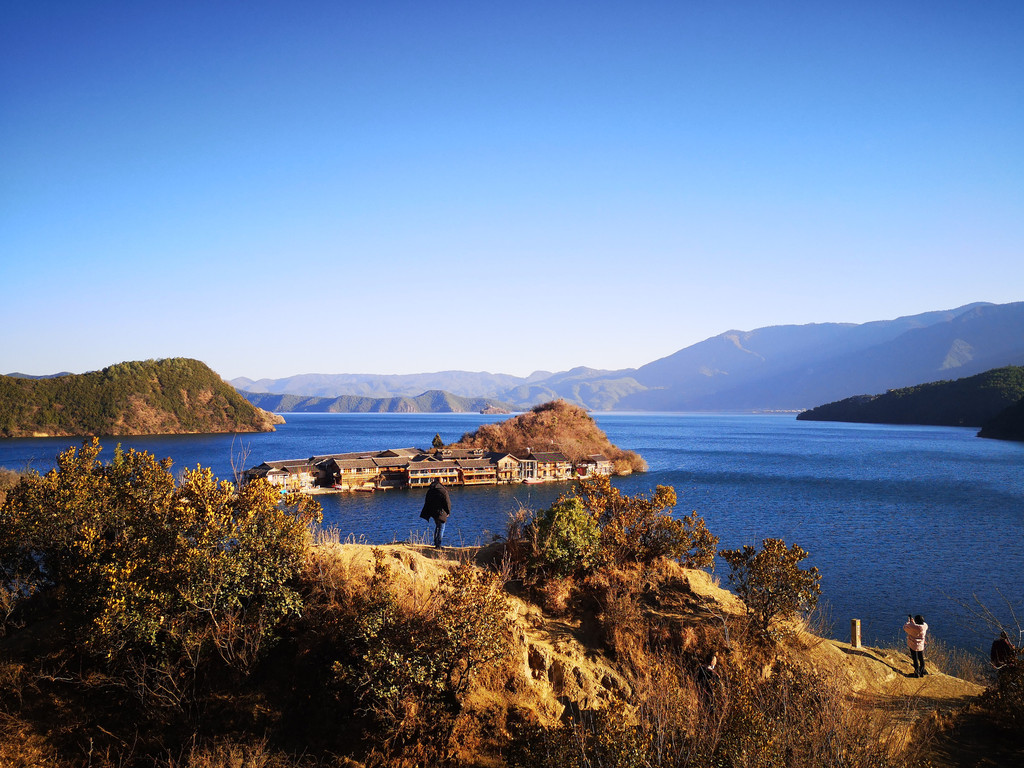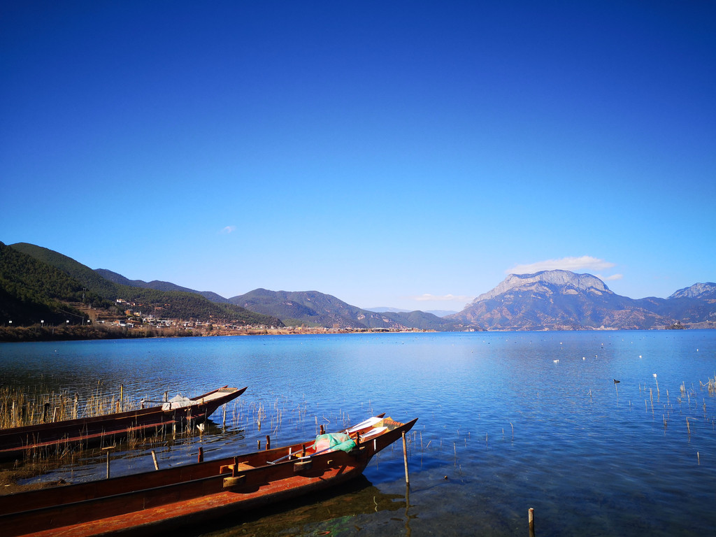 第3天:酒店退房安排接送去泸沽湖的大巴,团队人数比较多,大概40多人,大概中午到泸沽湖,第1次来觉得很漂亮,晚上住泸沽湖,含中餐和晚餐;泸沽湖景区比较大,处在云南和四川交界处,在云南部分的景色比较好,有碧绿的湖水,而在四川侧则被稻草和芦苇淹没了。
