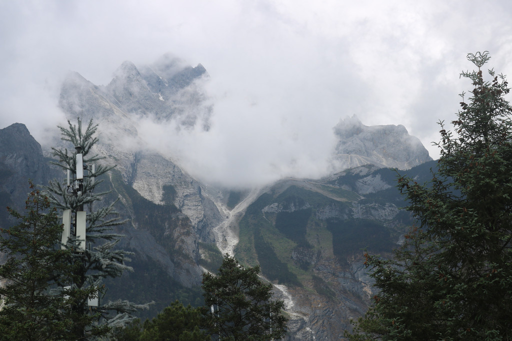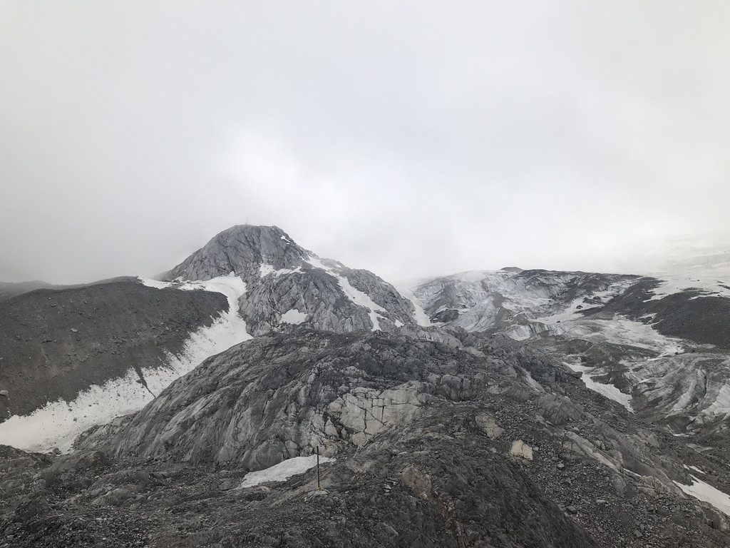 爬玉龙雪山的时候正值夏季,山顶虽常年有积雪,但山峰基本是光秃秃的一片,雾气很大,偶尔被风吹散后能看到山顶的雪景,引得大家惊呼和抓时机拍照,那画面可真太有意思了,让人忍俊不禁。