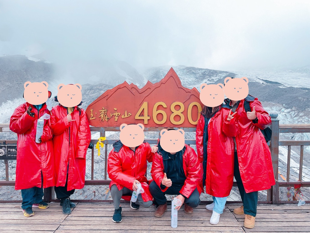 到达最高点4680米的观景台,大伙就像冰封的拍摄按钮被捂热了,开始了疯狂拍游客照,你拍我我拍你,大家互相拍,以至于后来相机里出现了超多的表情包,锁定了这一程的欢声笑语。