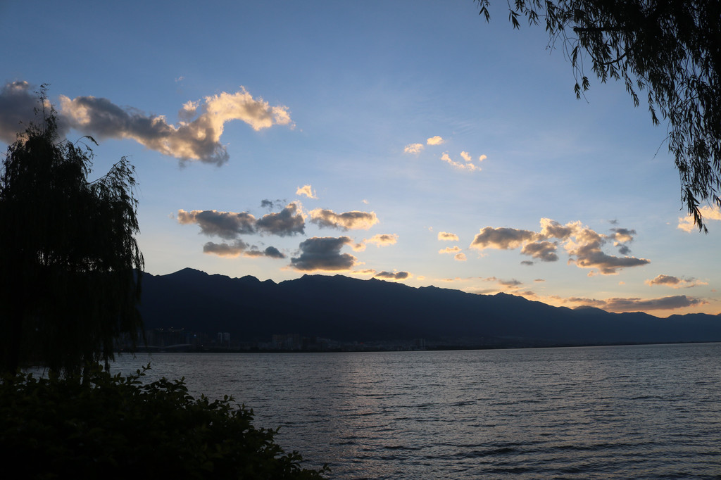 最喜欢的当属洱海的日落,阳光渐隐,云层变幻,微风吹过,柳枝摇曳,海水慢游,时光仿佛都被按下了慢放键,忽然就明白了为什么很多人说云南是个治愈的地方了。