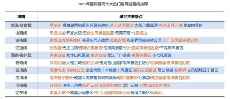 预计十大自驾热门路线大多分布在西部、南部,主要有青海—甘肃线,山西线,湖南线等。