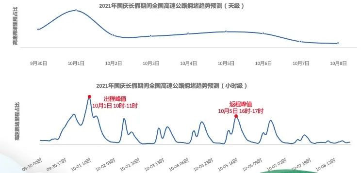 高德地图联合全国各地交警,发布《2021国庆假期出行预测》,预计全国高速10月1日9时——12时为出程高峰,返程高峰提前至10月5日15时——19时。