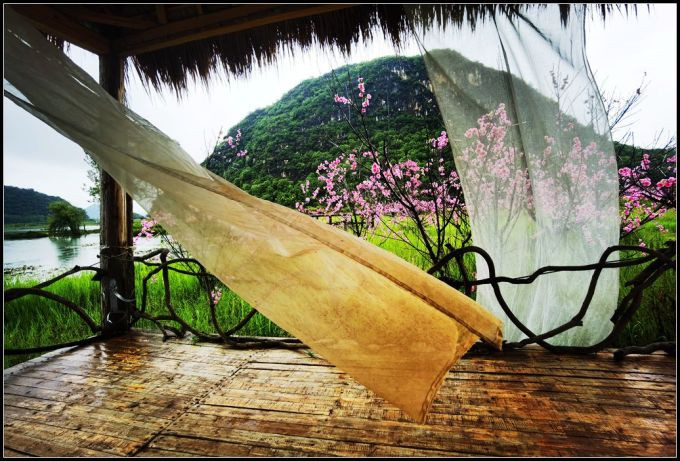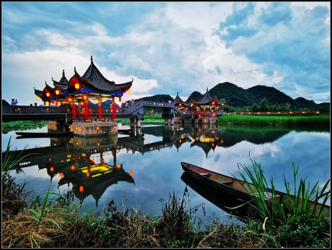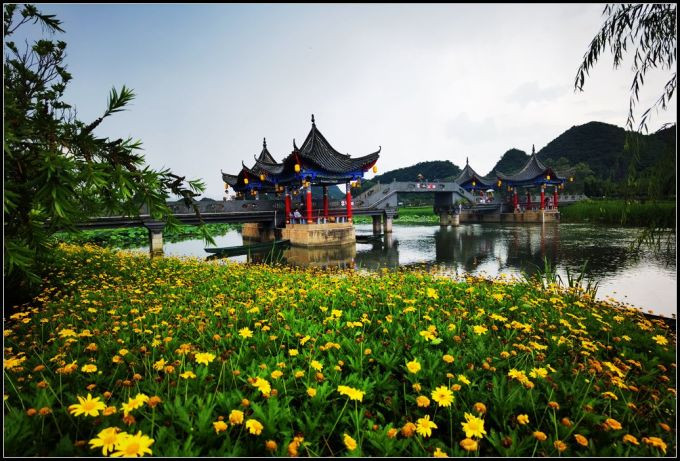 普者黑 的桃花岛景区。这里因为是电视剧《三生三世》的外景拍摄地而走红。