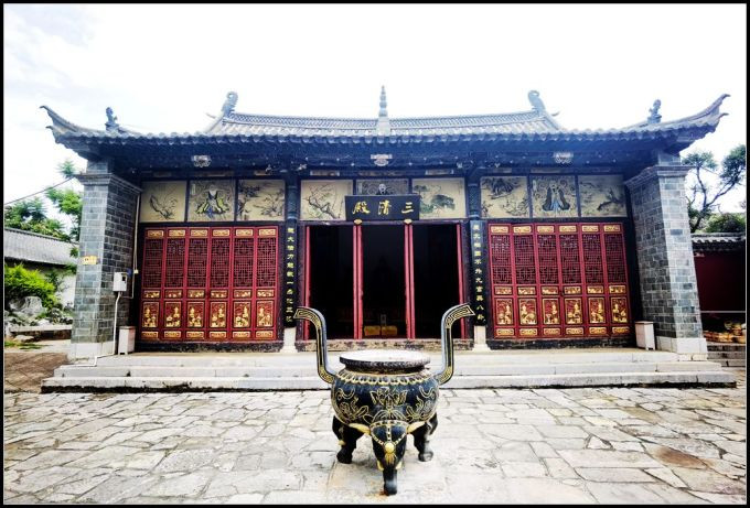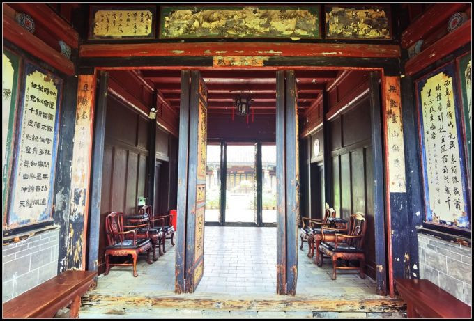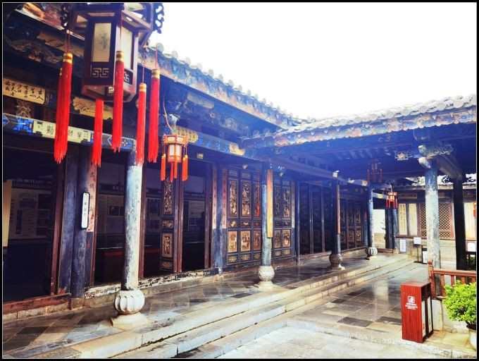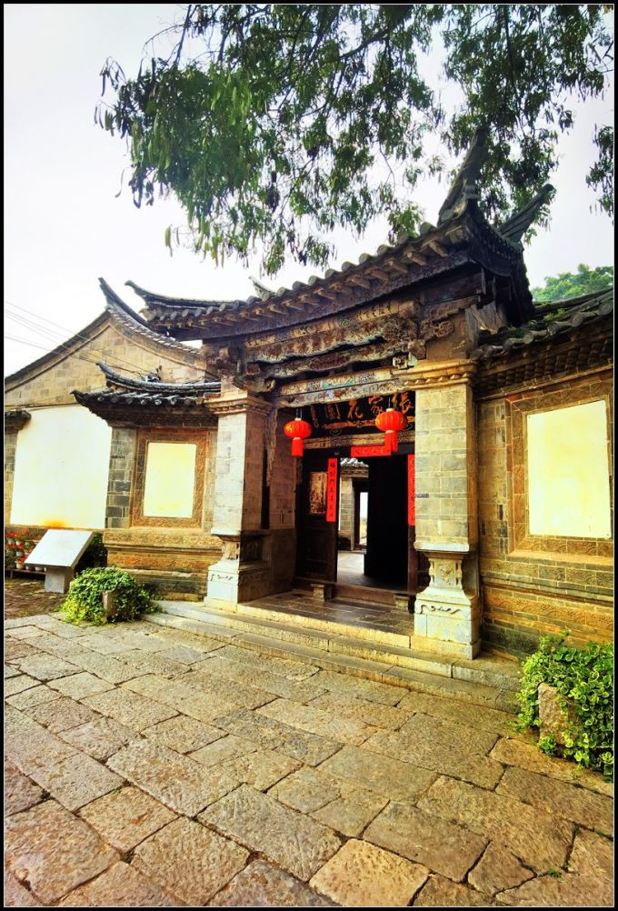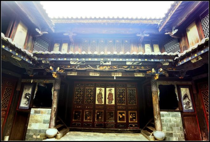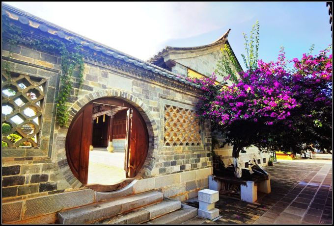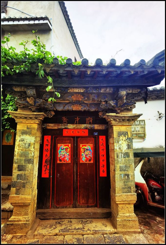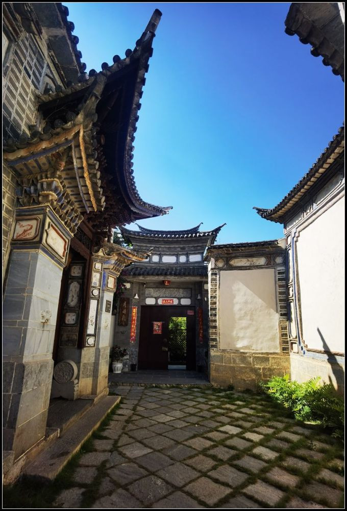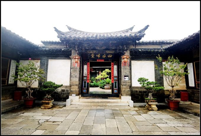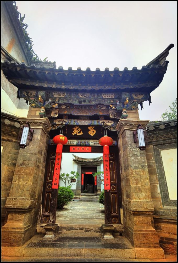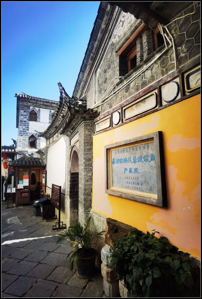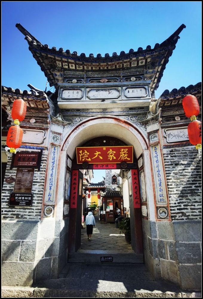大理 大理 大理喜洲 古镇保存着许多完好的白族大院和民居,这些建筑雕梁画栋、斗拱重叠、翘角飞檐、门楼、照壁、山墙的彩画装饰艺术绚丽多姿,充分体现了白族人民的建筑才华和艺术创造力。严家大院是其杰出的代表之一。