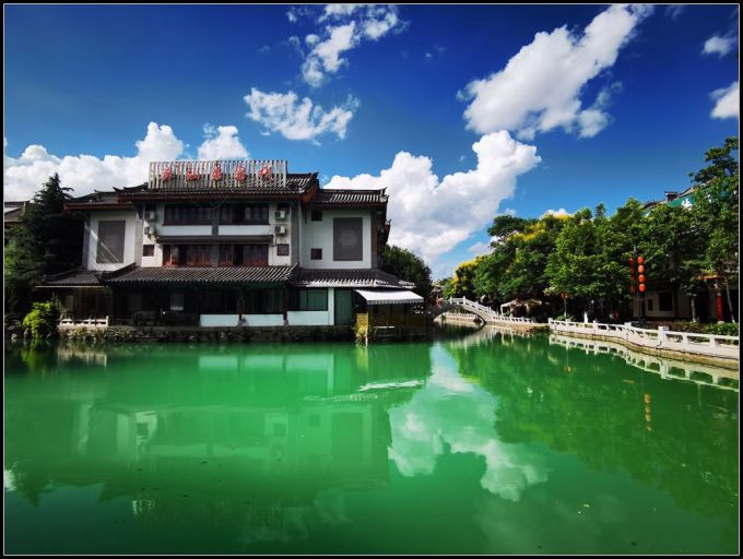 彝人古镇的风景还是很漂亮的,仿古的建筑也很美。