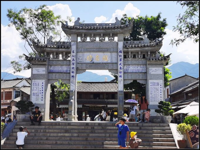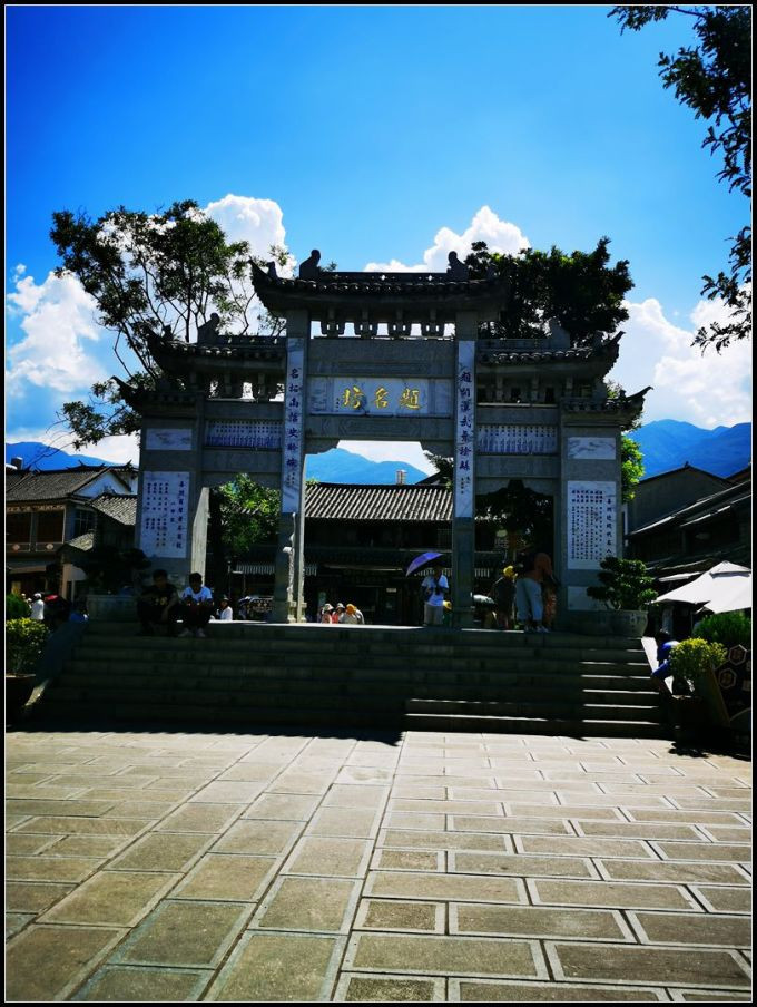 大理 大理 大理 大理喜洲 古镇的中心——四方街,是由店铺围成的小广场。这里竖着一座石坊,这就是近年来修建的“文明坊”。这个地方原来的石坊叫“题名坊”,是明代镇上出了几位进士之后建的,那时候凡是在科举中取得功名的村民都可以把名字刻上。