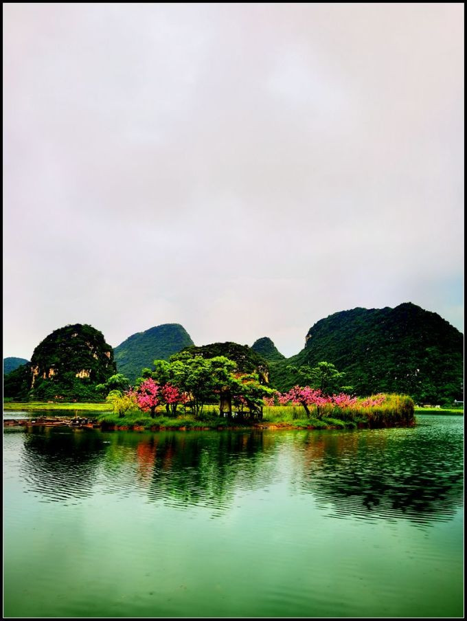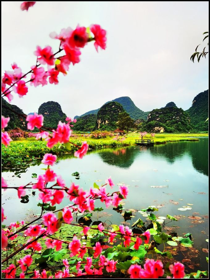 普者黑 的桃花季节在二三月份,桃花岛的这些桃 花都 是假的,但是的确也非常逼真,很漂亮。