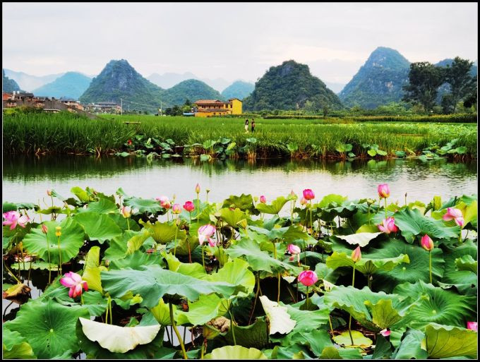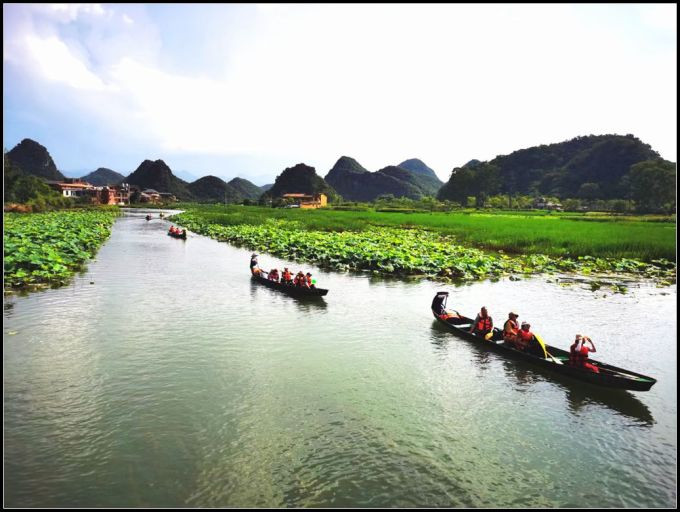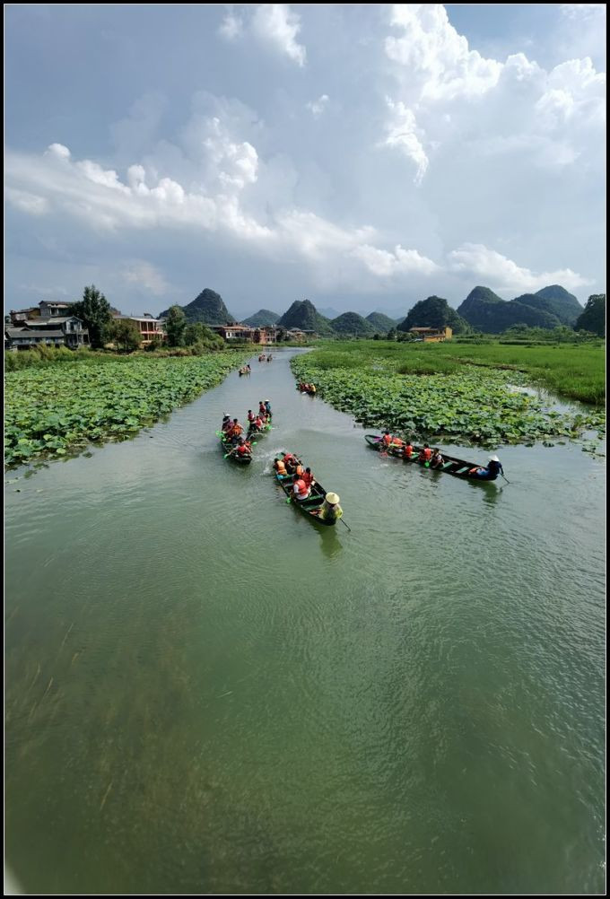 今天从 广西 鹅泉开车近5个小时,到达 云南文山 的 普者黑 。普着黑位于 云南 省 文山 壮族苗族自治州 丘北 县,距县城13千米,景区总面积388平方千米,核心景区165平方千米,属于滇东南岩溶区,是发育典型的喀斯特岩溶地貌,以“水上田园、湖泊峰林、彝家水乡、岩溶湿地、荷花世界、候鸟天堂”六大景观而著称。