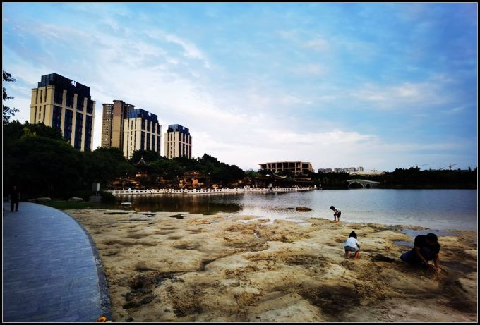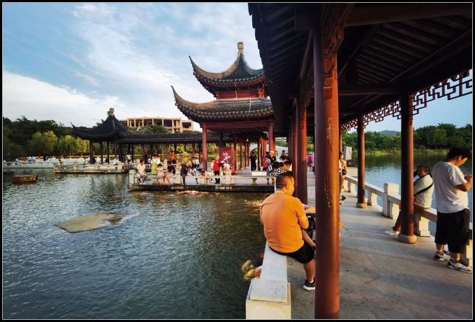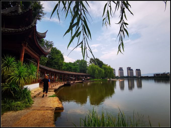 弥勒 市的环境十优美,这是在分湖边休闲的居民。